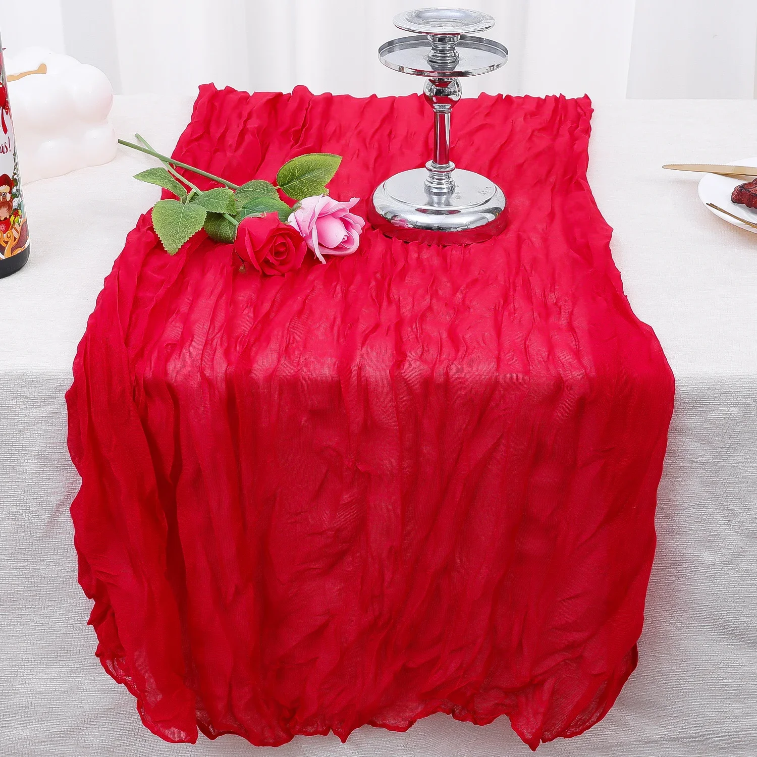 1.8/3/4M Christmas Red Table Runner Polyester Cheesecloth Valentine Long Decorations Wedding Party Banquets Bridal Baby Shower