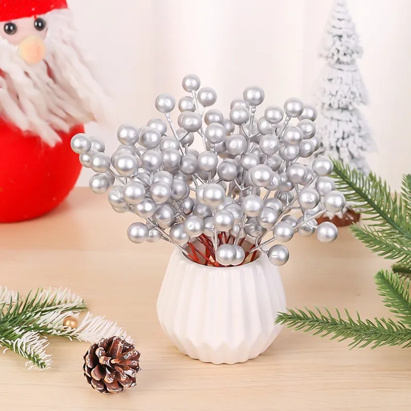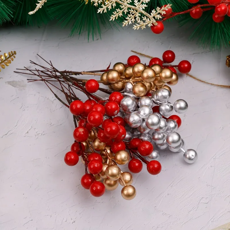 100/1pc Artificial Red Berry Stems Christmas Tree Holly Berries Branches DIY Xmas Wreath Table Ornaments New Year Party Decor
