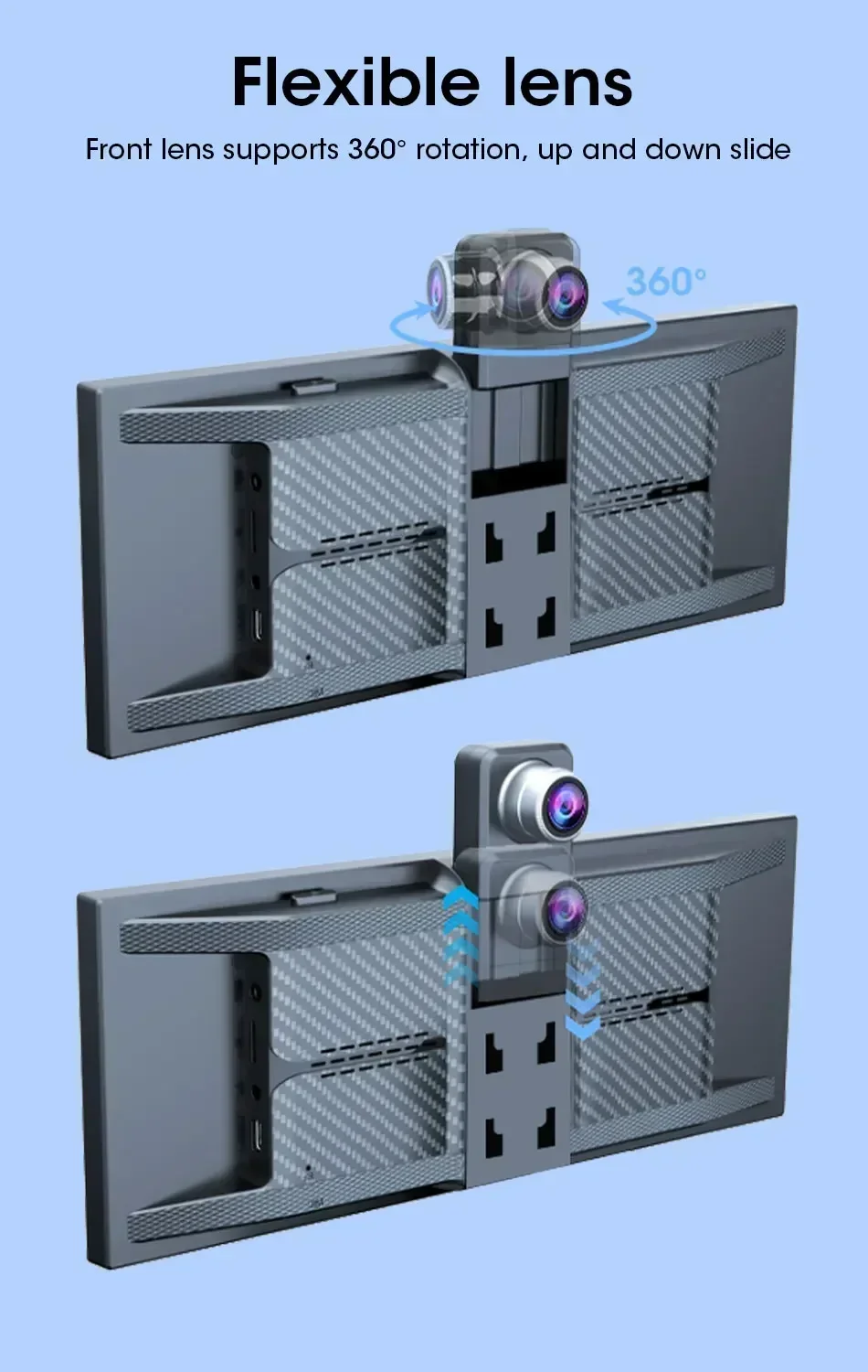 2.The T368 is a 11.3-inch large screen with a 4K 360 ° rotation front facing lens, support 1080P rearview camera(Need to Purchase).
