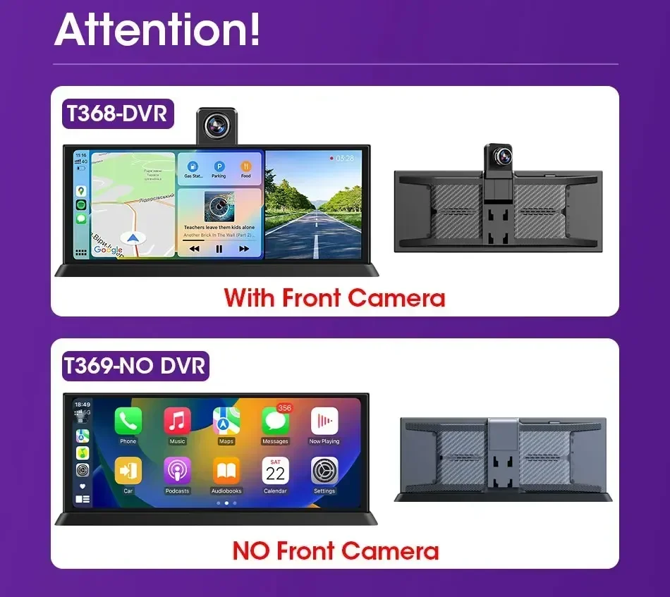 1.The T369 is a 11.3-inch large screen, don't include front camera and no DVR function