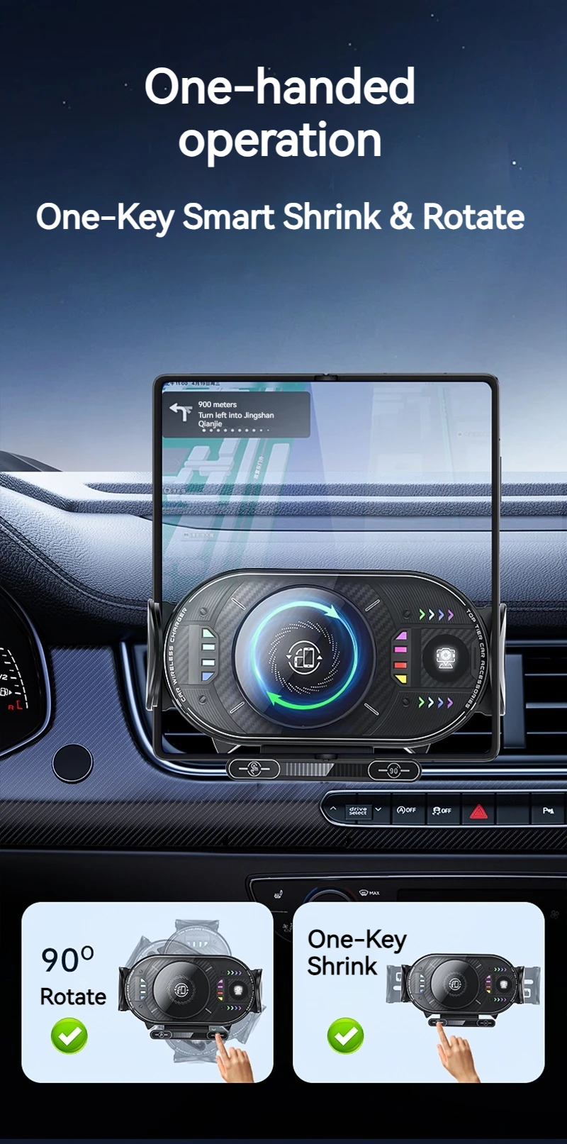 15W Universal Car Phone Wireless Charger Holder 90° Rotation Mount for Samsung Galaxy Fold 6 5 4 3 Z Flip S25 S24 Iphone 17 16