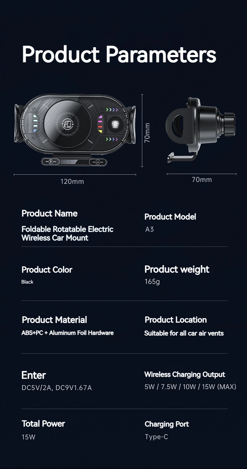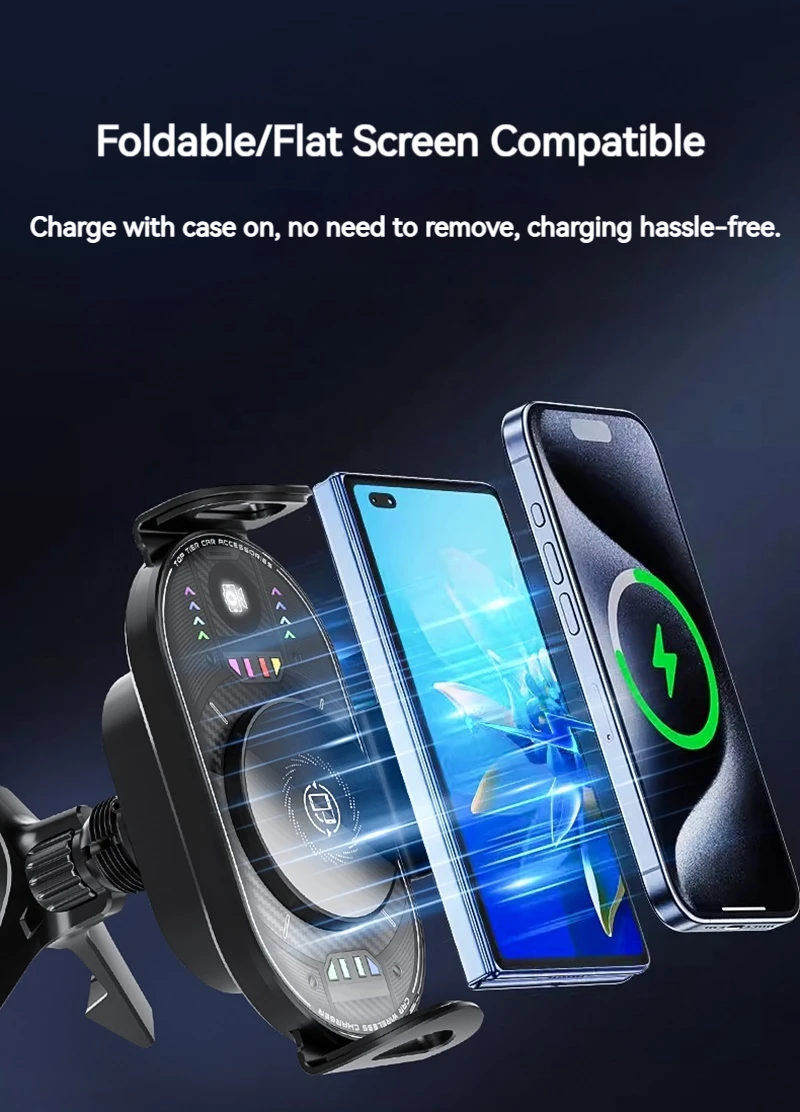 15W Universal Car Phone Wireless Charger Holder 360° Rotation Mount for Samsung Galaxy Fold 6 5 4 3 Z Flip S25 S24 Iphone 17 16 15