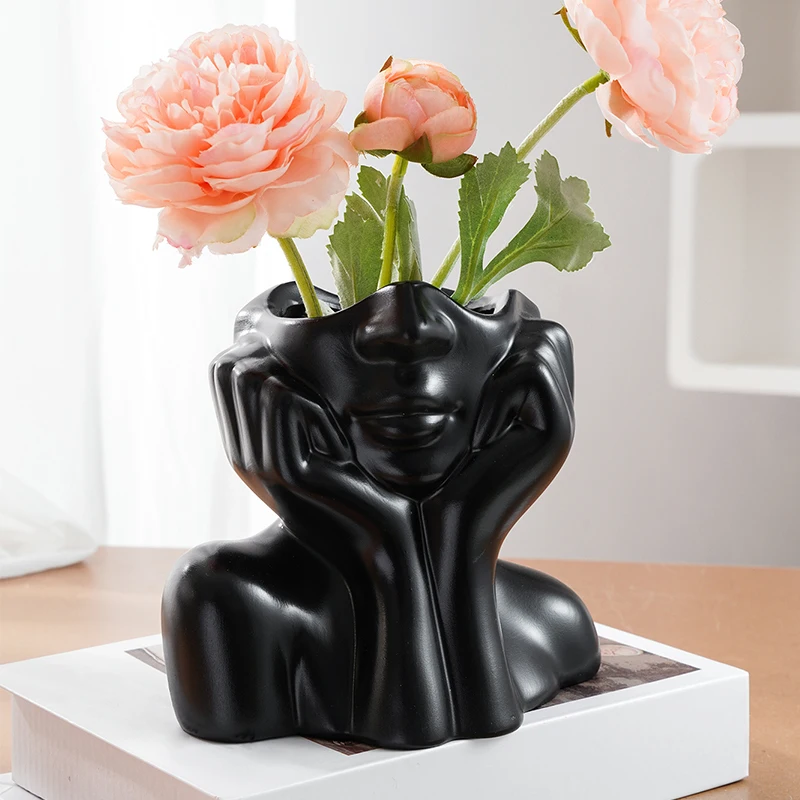 1PC, a modern and simple resin double-hand face support design household vase, which can be given as a gift