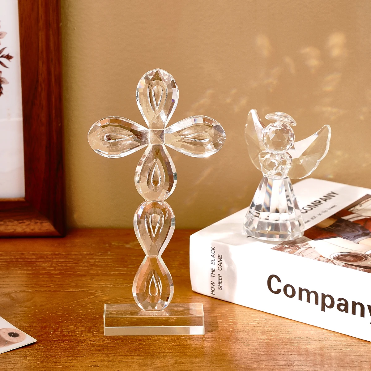 1PC Love Angel and Cross Prism Shaped Glass Crafts, Window Sills Sun Catcher Ornament Prism Light Catching Decorative Crafts