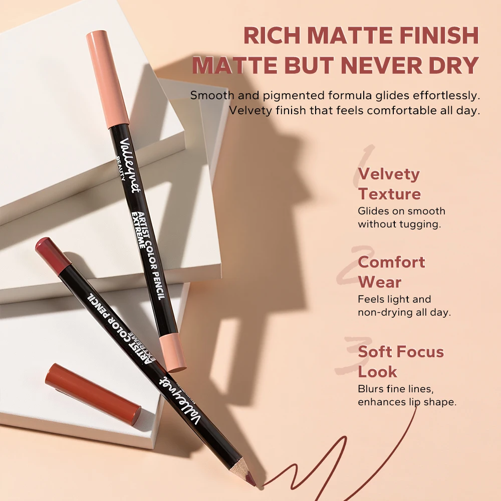 2 Pcs/Set Lip Combo Set Lipstick + Lip Liner Long Lasting Waterproof Easy To Apply Lipstick Set Glossy Lipstick Lip Makeup