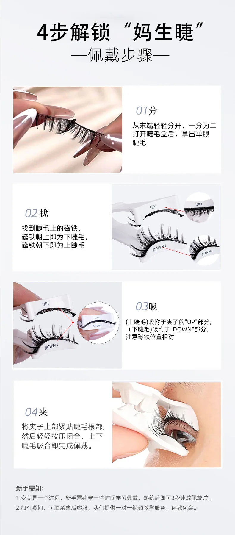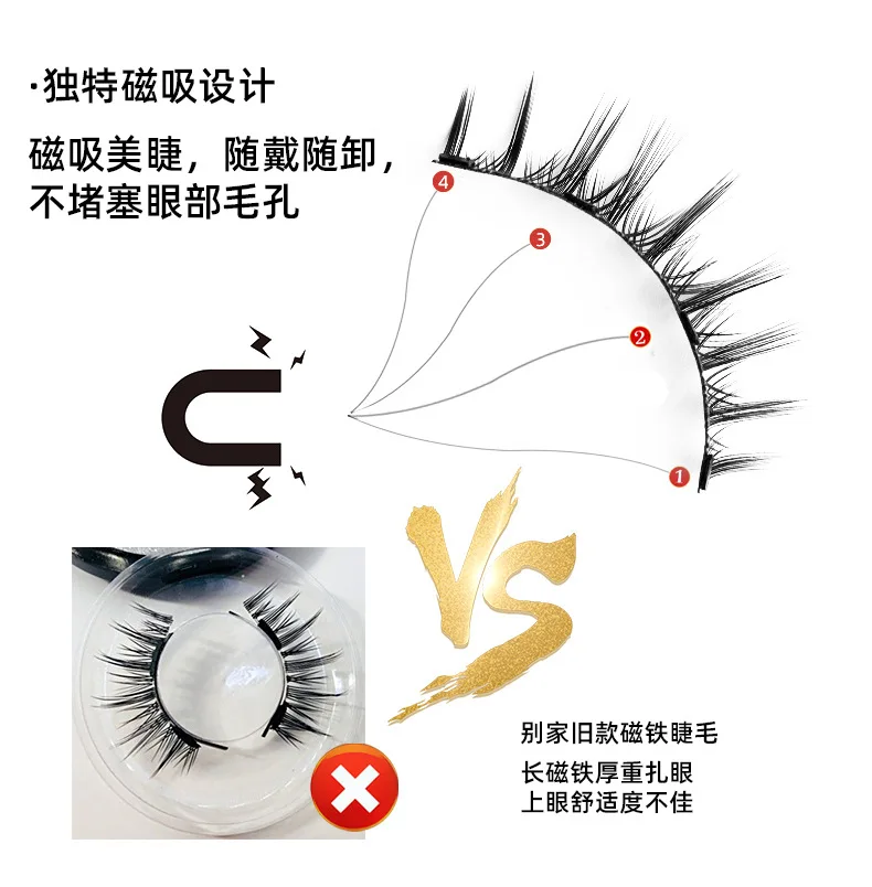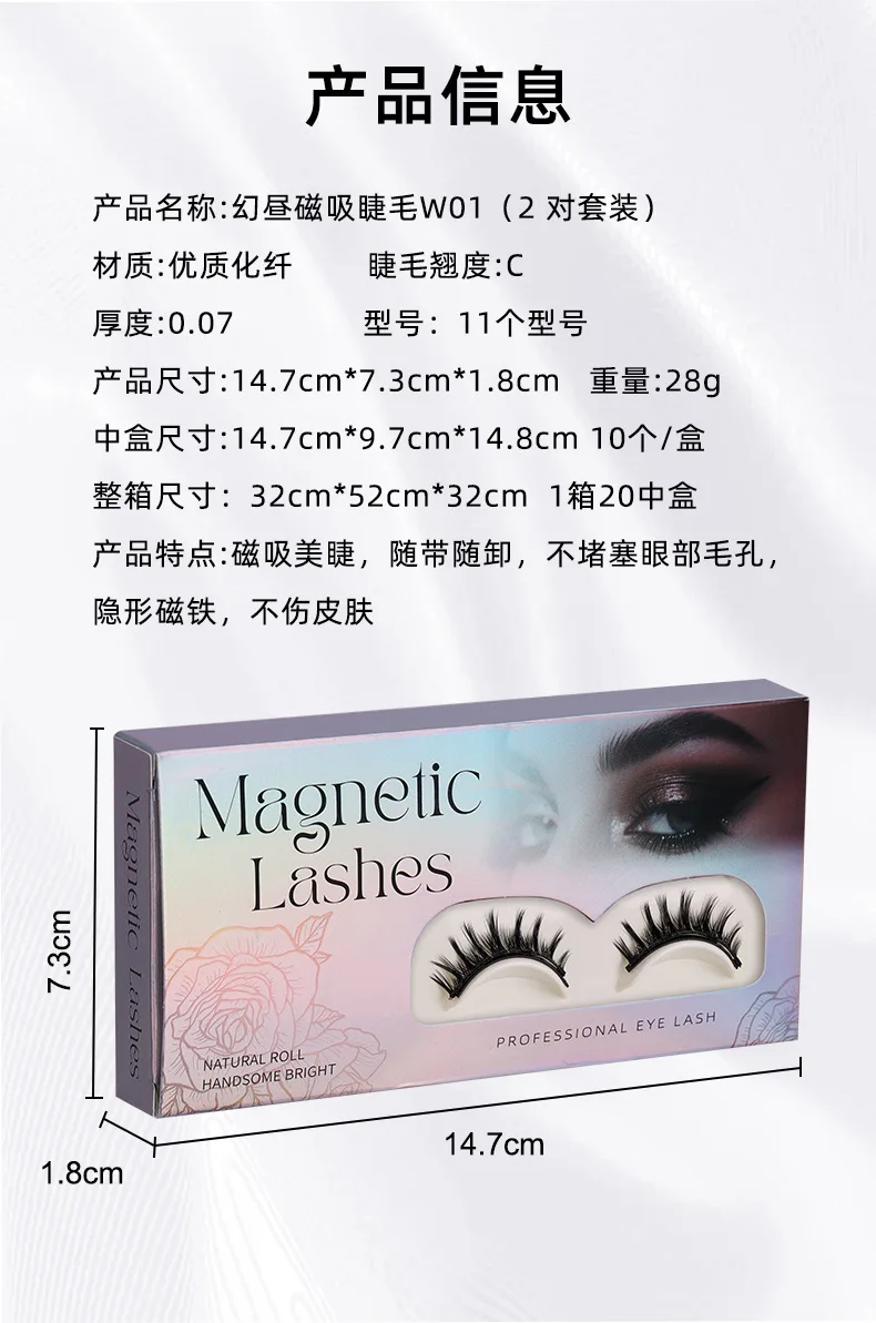 2Pairs Magnetic Eyelashes 3D Natural False Eyelash Reusable Easy Wear Eye Makeup Set Gluee-free Lashes