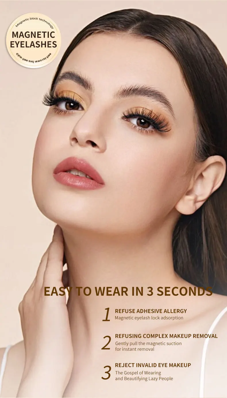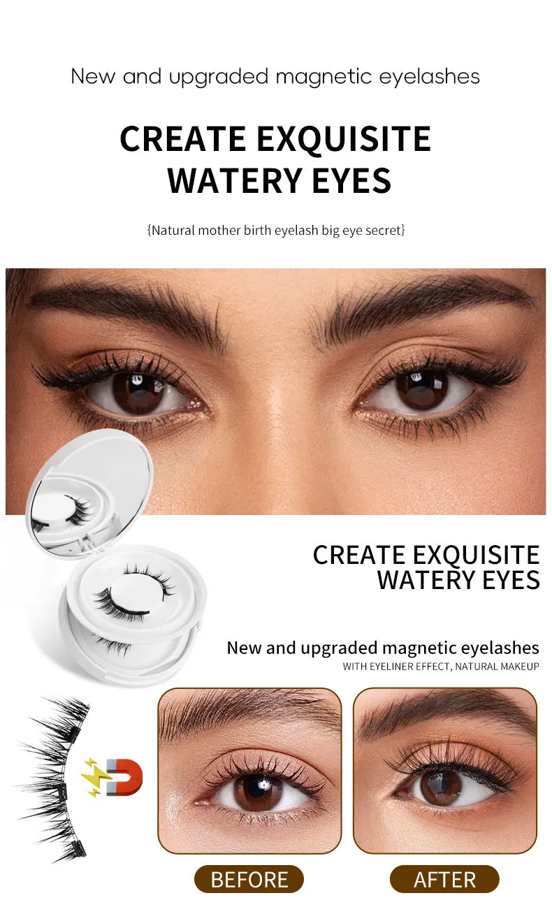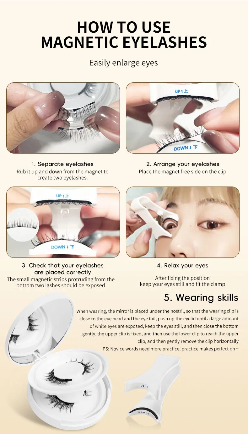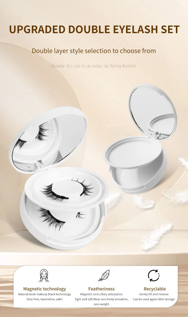 2pairs Magnetic False Eyelashes New Style Glue-Free Mink False Eyelashes Natural Nude Makeup With Mirror Reusable Beauty
