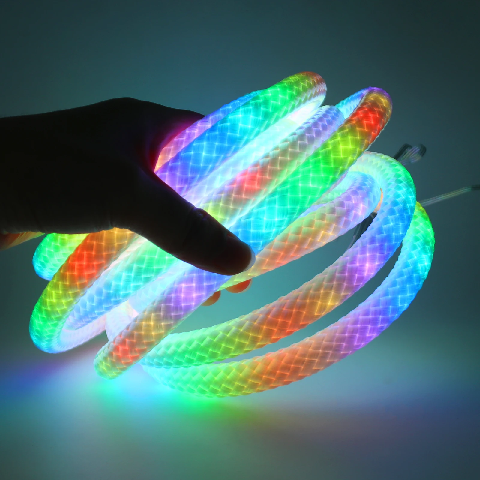 360 Glow Round RGB Neon LED Woven Strip Light 24key Bluetooth APP Remote Control 5V USB WS2812B Music Sync Waterproof Rope Decor