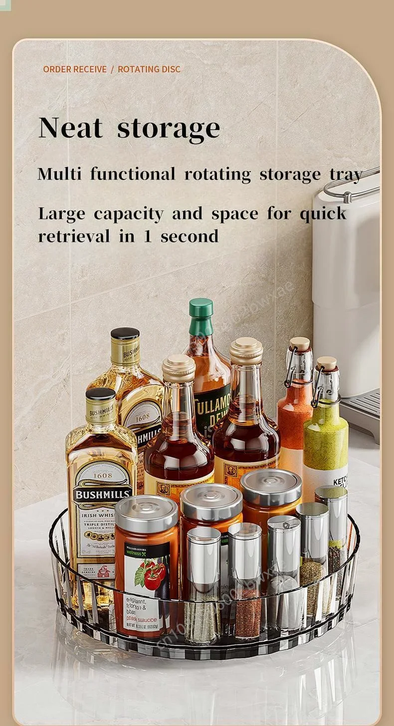 360 Rotating Tray Spice Rack Pantry Cabinet Turntable With Base Storage Bin Kitchen Organizer For Seasoning Cosmetic Storage Box