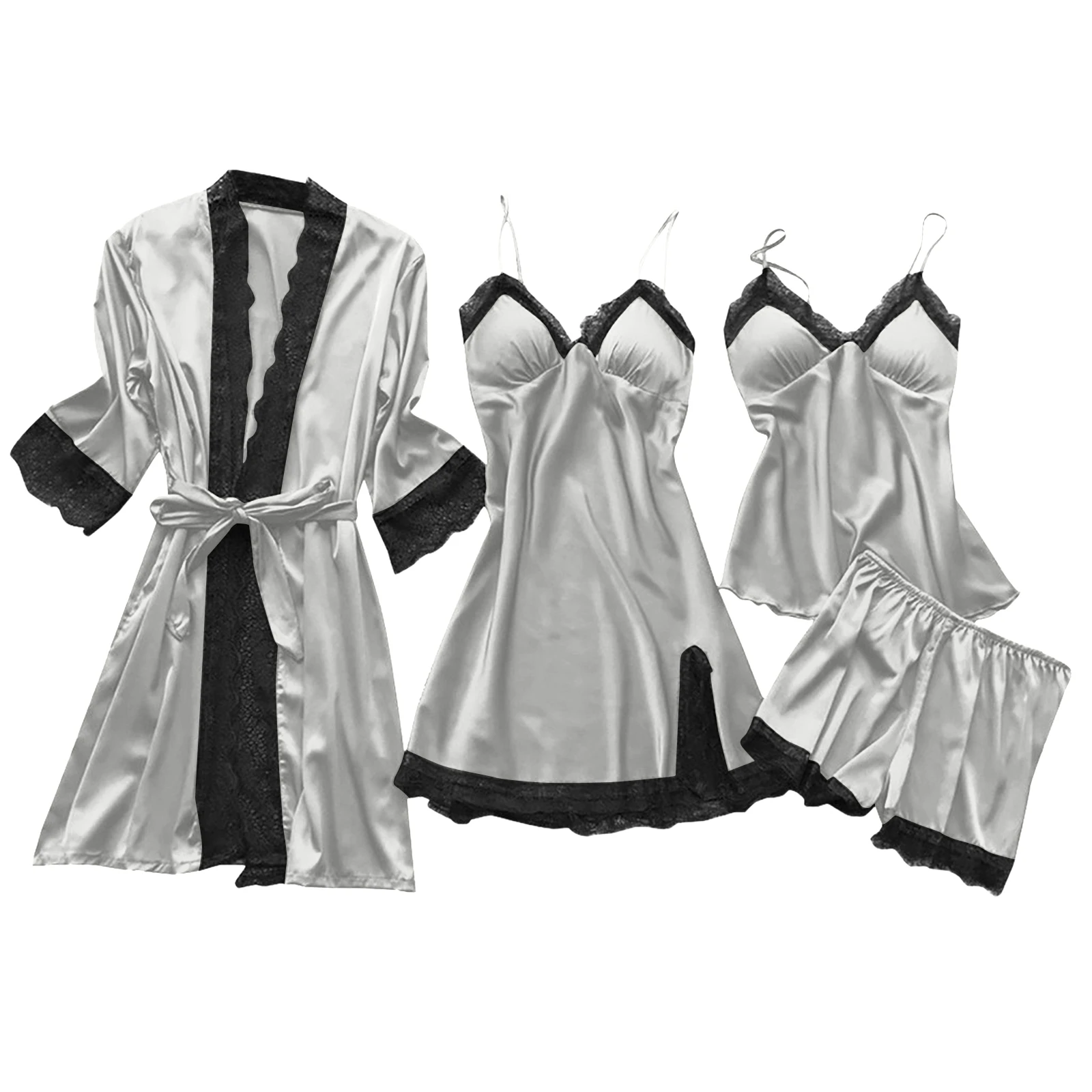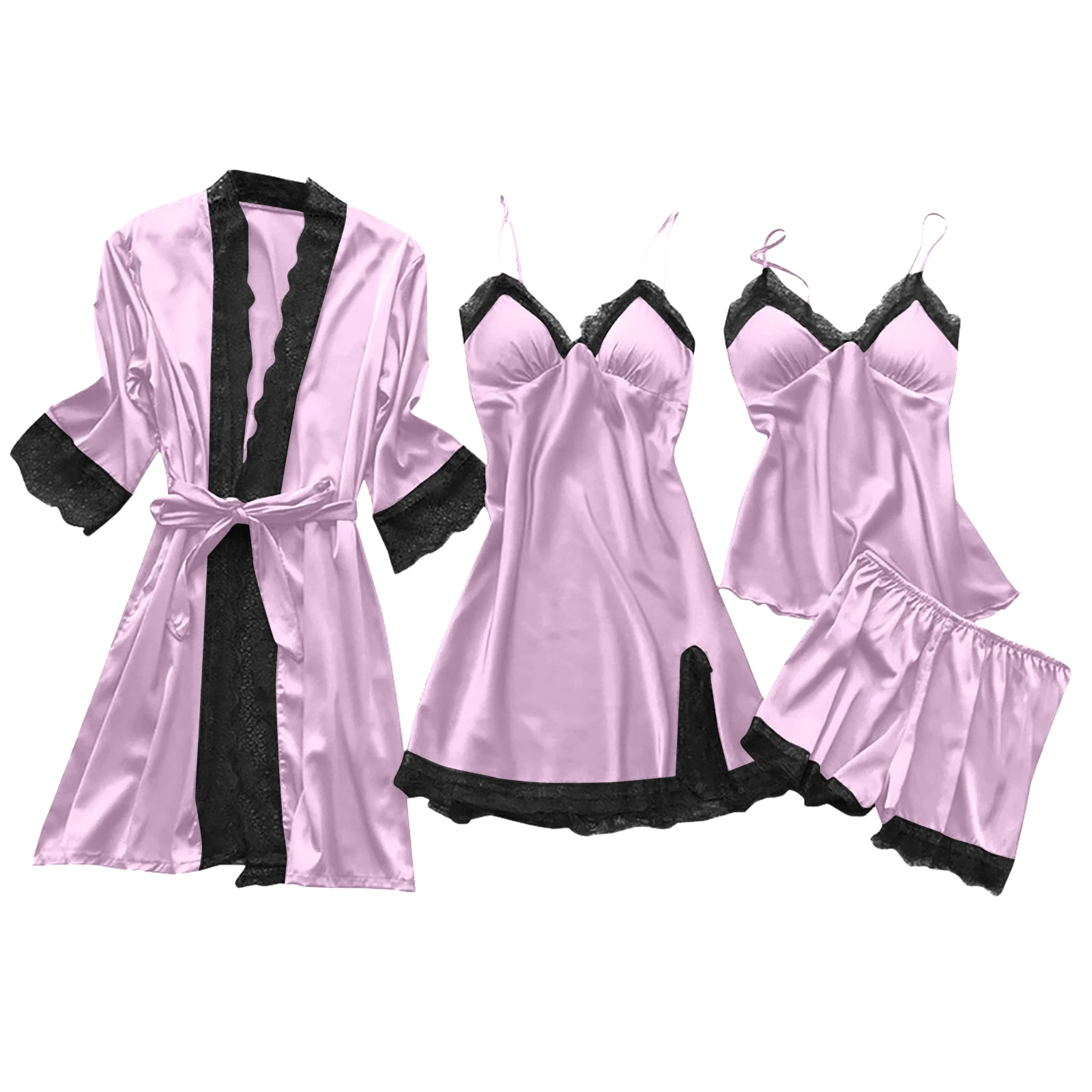 4-Piece Set Ladies' Sleepwear Sexy Sleepwear Women Suspender With Chest Cushion Nightgown Bathrobe Home Wear Women'S Pajamas