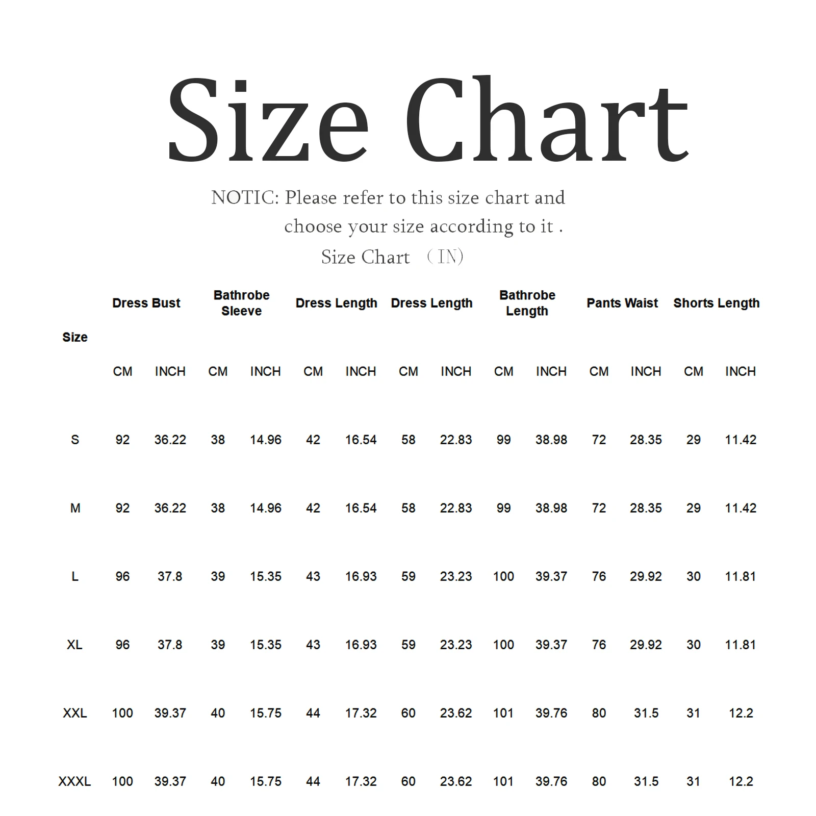 | Size | Dress Bust | Bathrobe Sleeve | Dress Length | Dress Length | Bathrobe Length | Pants Waist | Shorts Length |
