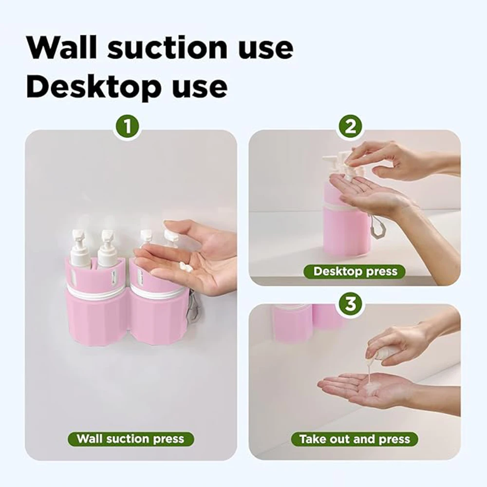 4in1 Travel Dispenser Bottles with Suction Cup, Travel Size Toiletries, Leak Proof Travel Containers for Toiletries