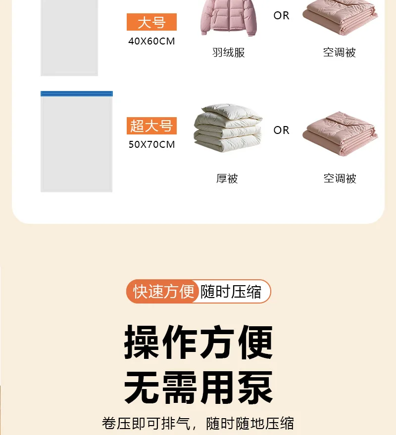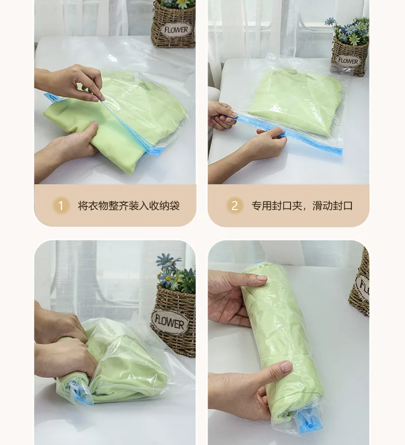 5-pieces Hand Roll Vacuum Compression Bag, Clothing Duvet Cover Storage Bag Business Travel No Need for Vacuum Compression Bag