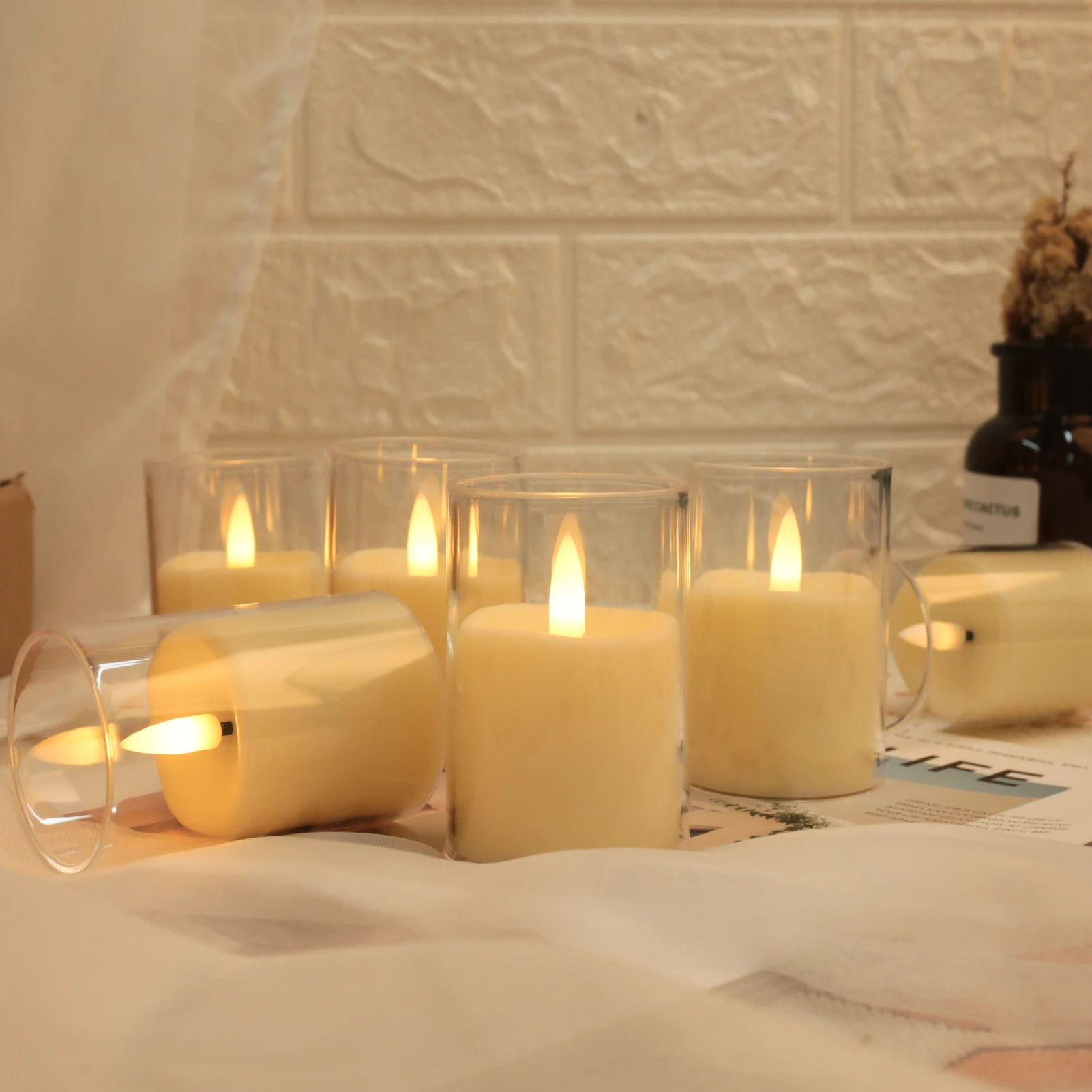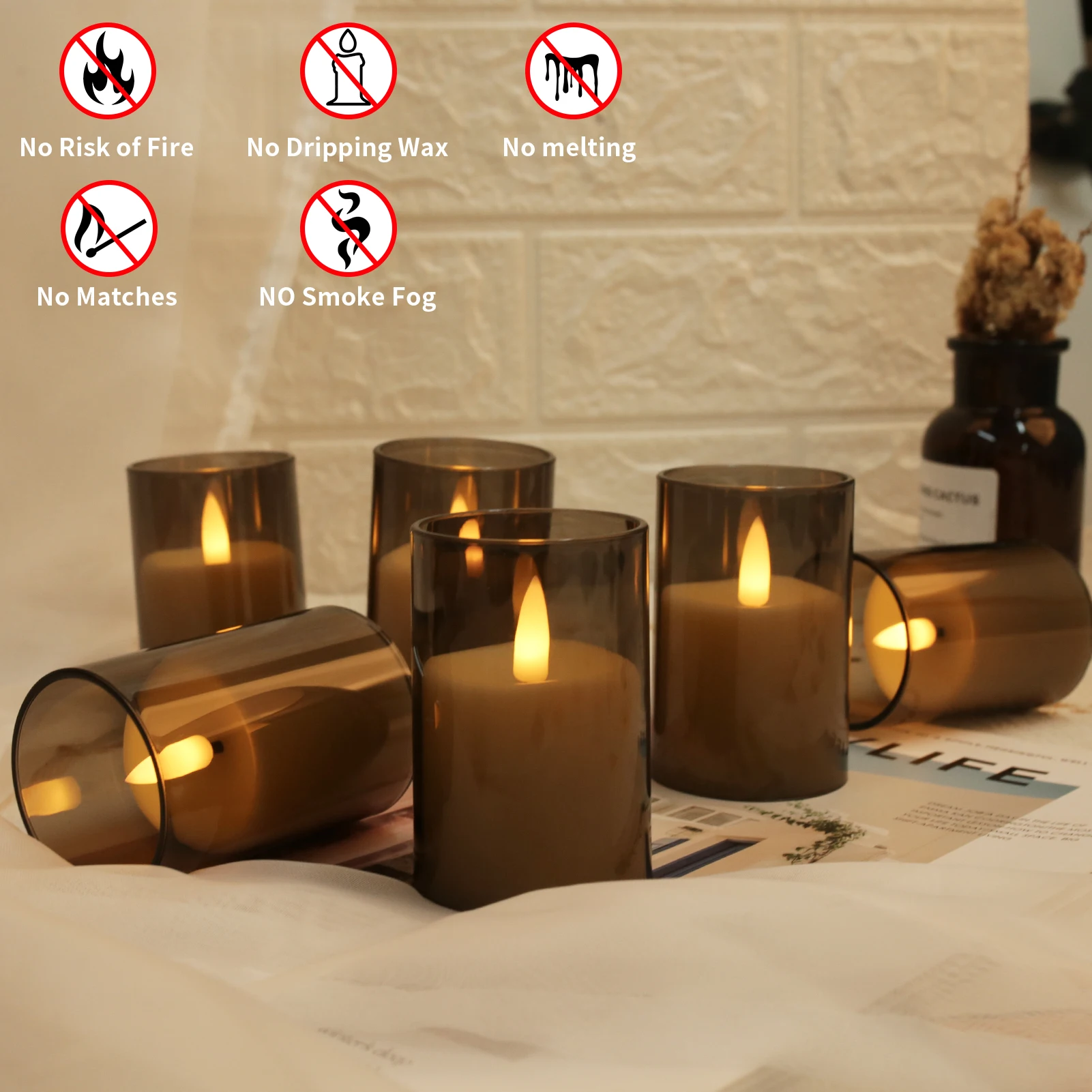 6pc Led Flameless Electric Candles Lamp Acrylic Glass Battery Flickering Fake Tealight Candle Bulk for Wedding Christmas Table
