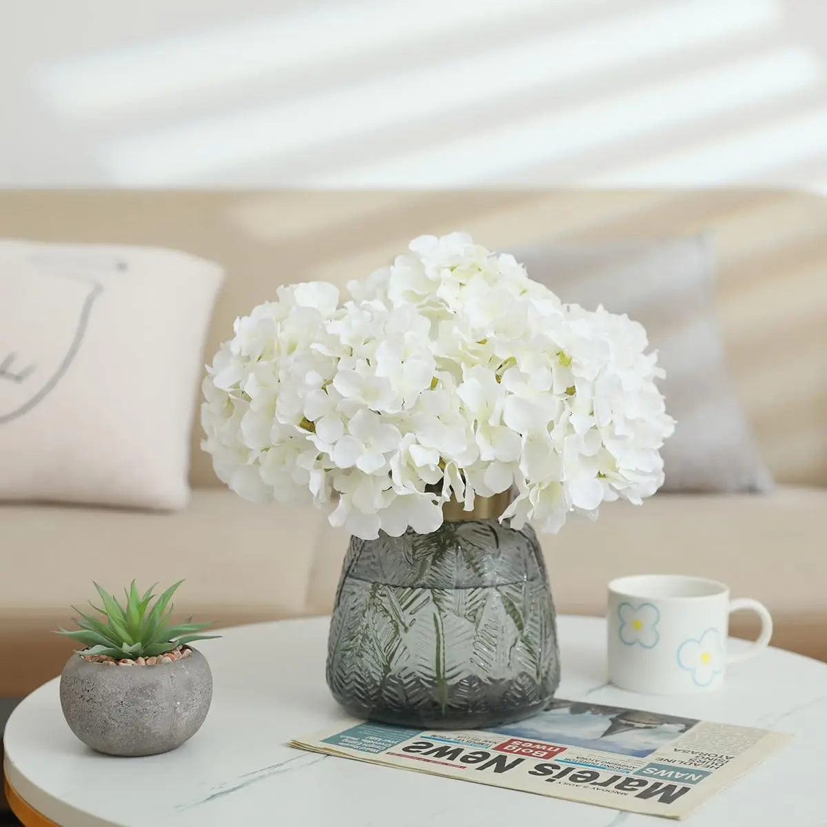 6PCS Artificial Hydrangea Flowers with Stem Fake Hydrangea Flower DIY Floral Wedding Centerpieces Home Party Table Decoration