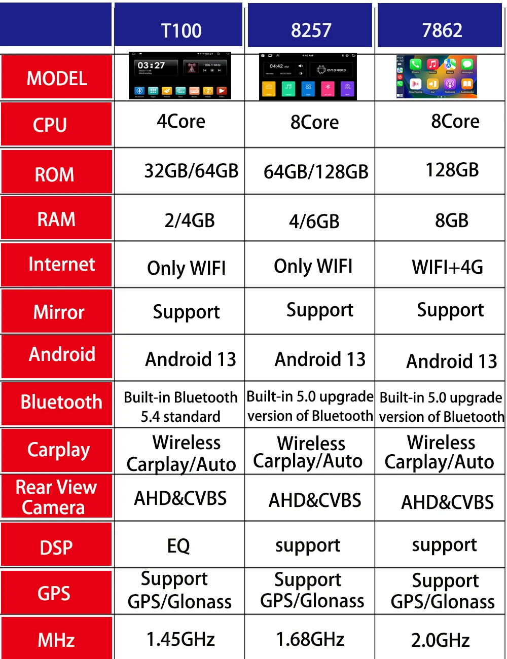 Special Features: wifi function,Support 3G Network,Support 4G Network,Support Can-Bus,Built-in GPS,Charger,Mobile Phone,MP3 players,dsp,CarPlay,android auto,Reversing Input,Split Screen,Support steering wheel control