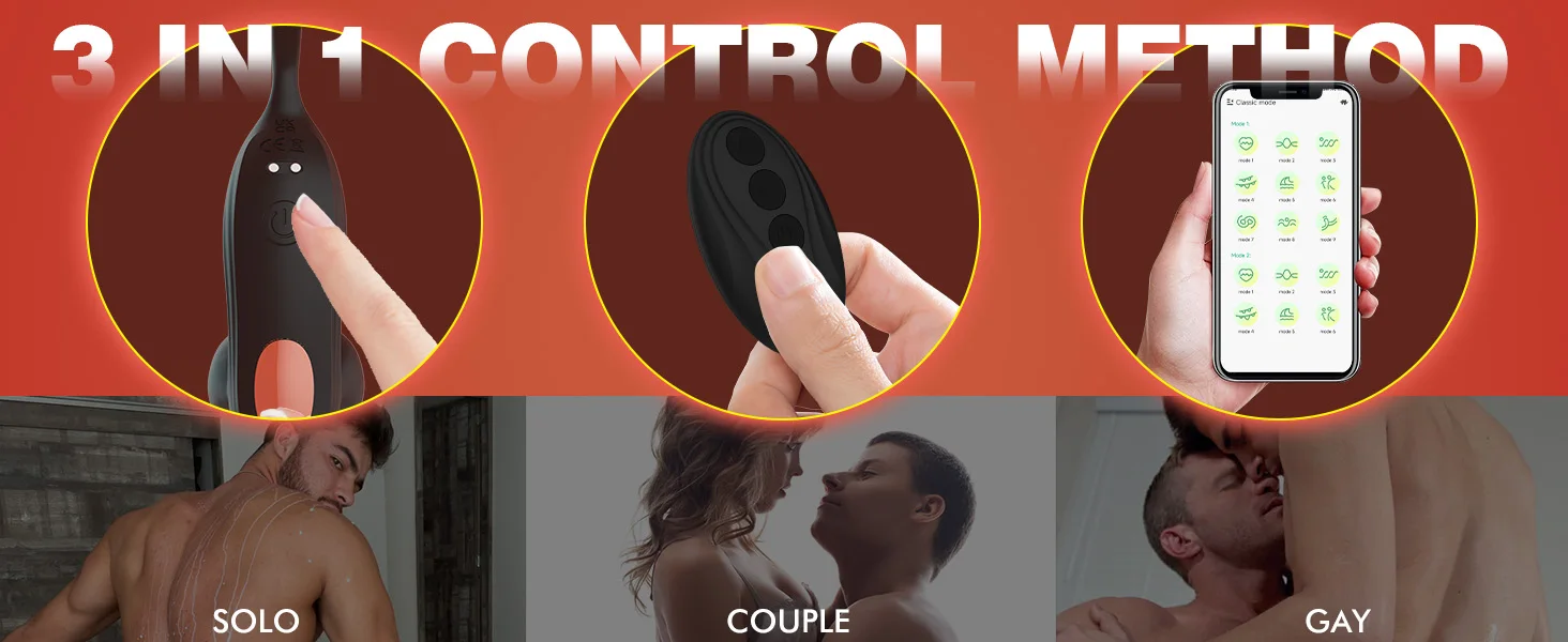 😍This vibrating prostate massaging features three convenient control methods: remote control + APP control + independent button control. The remote offers seamless, hands-free enjoyment, while the APP enhances your experience with customizable settings and long-distance capabilities. Whether you're enjoying it alone or connecting with a partner from a distance, this male prostate toy ensures your pleasure is always just a touch away