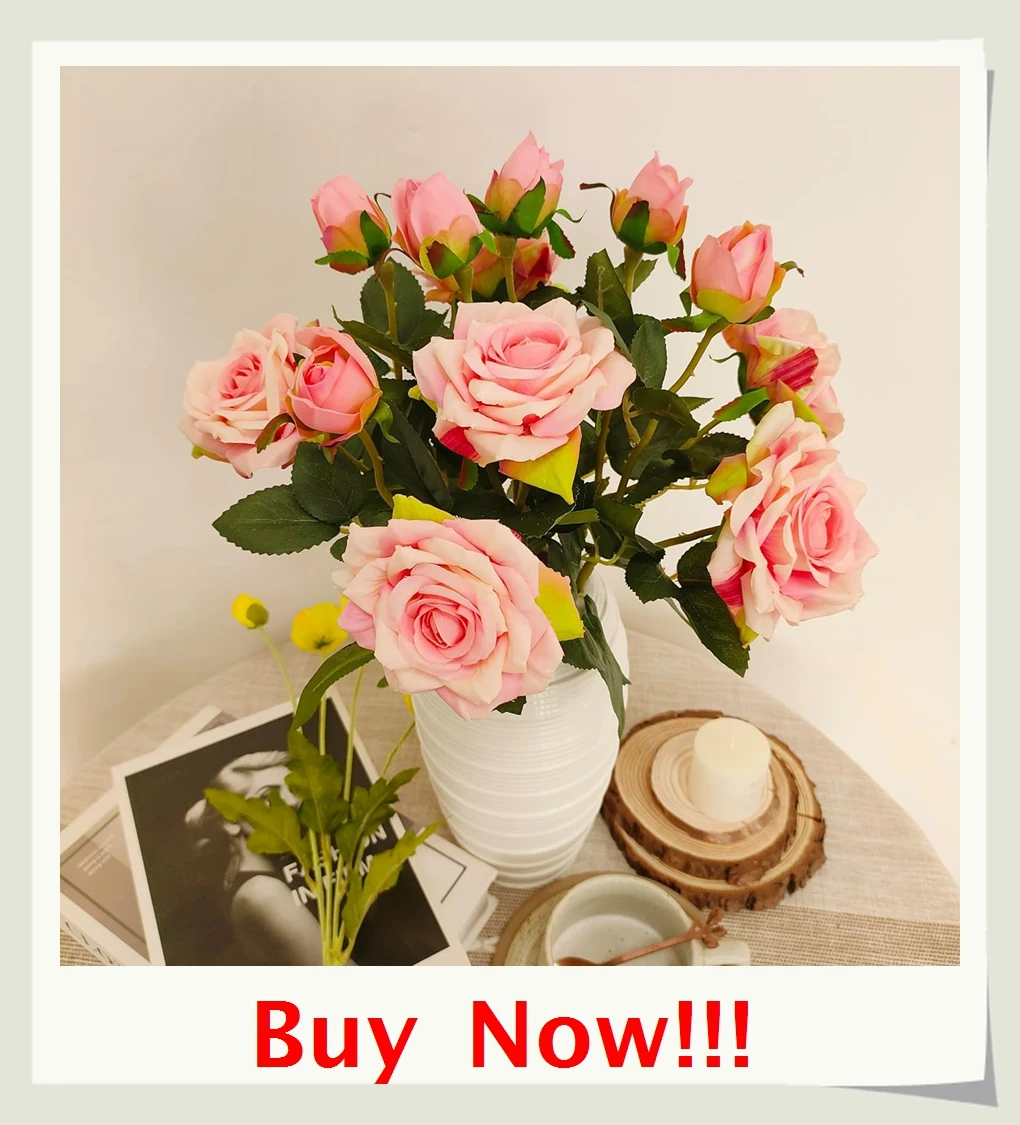 Artificial Flowers Vase For Home Decor Outdoor Garden Valentine Eucalyptus Leaves Fake Plants Wedding Party Silk Roses Bouquet