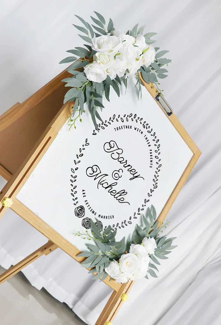 Artificial Wedding Arch Flowers Kit Boho Dusty Rose Blue Eucalyptus Garland Drapes for Wedding Decorations Welcome Sign