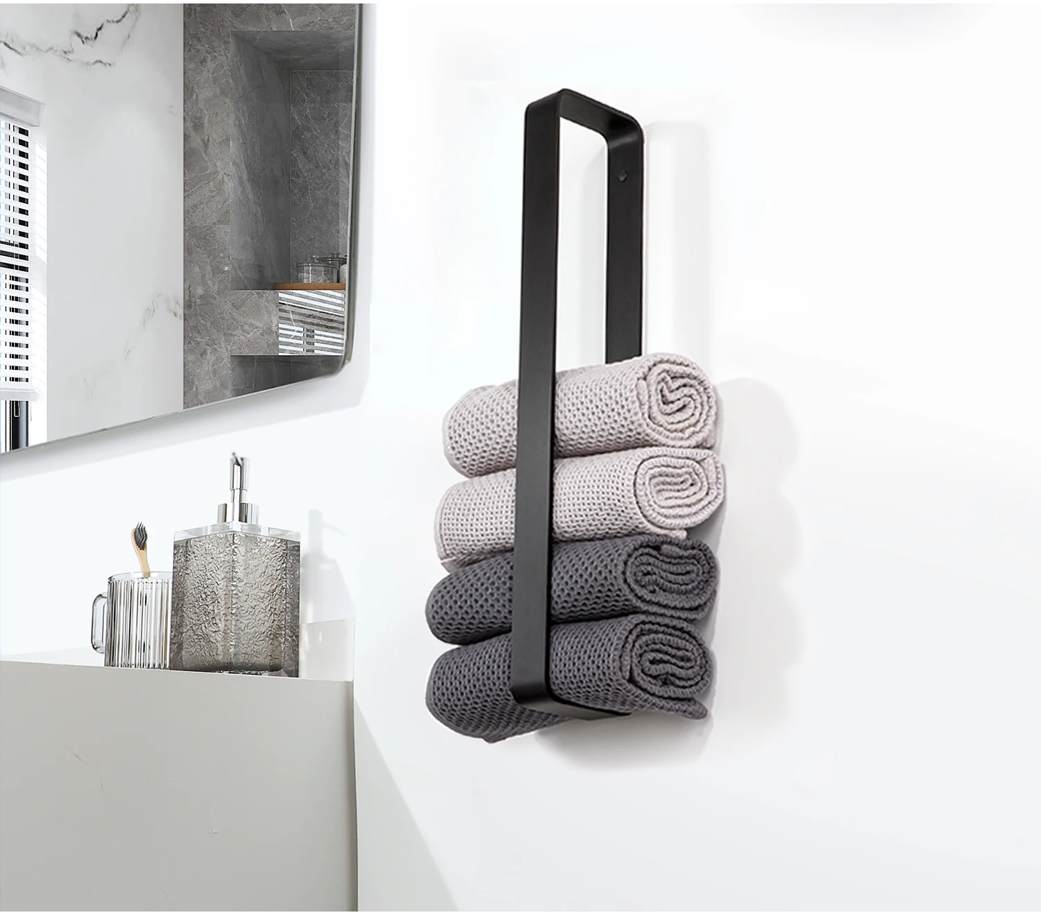 Multi-purpose Towel Bar: Can be placed horizontally as a towel ring, or can be installed vertically to store a pile of rolled-up towels.