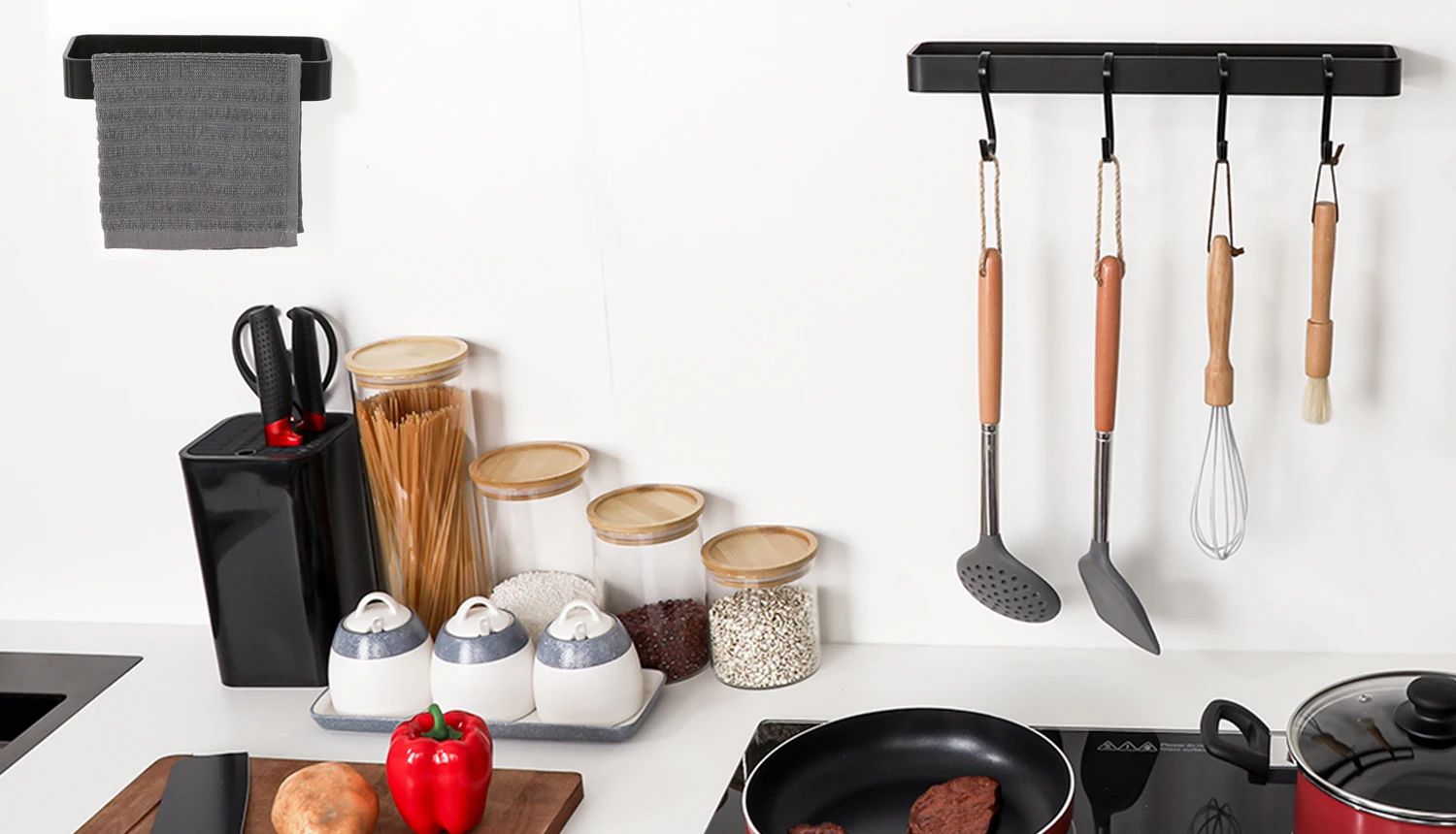 Bathroom Towel Rack Towel Holder 20/30/40CM Black Towel Bar No drill Wall Mount Stainless Steel Kitchen Cabinet Storage