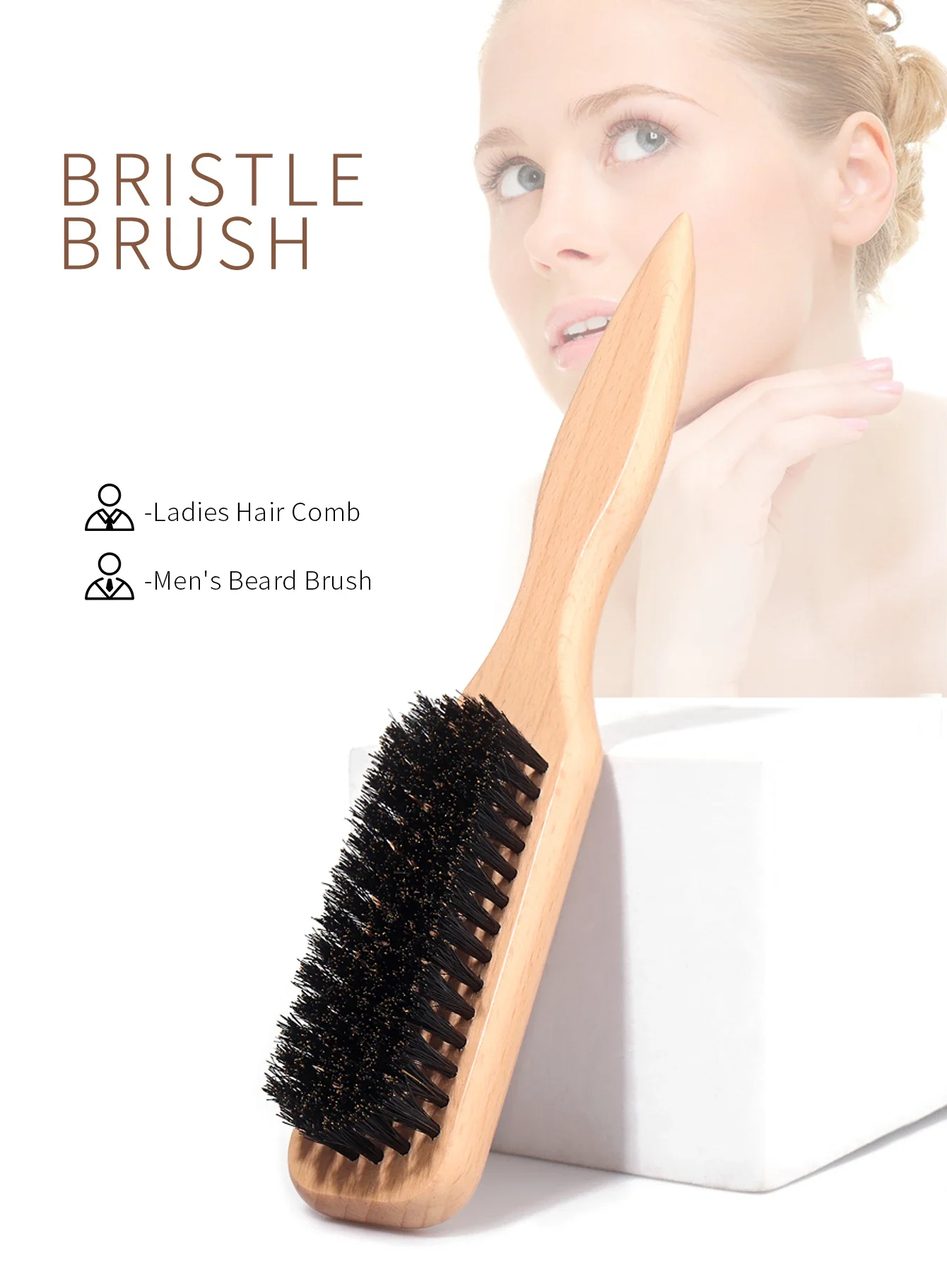 Boar Bristle Slick Back Hair Brush for Sleek Ponytail Bun & Smoothing Baby Hairs, Flyaways, Edge Control - Backcombing & Teasing