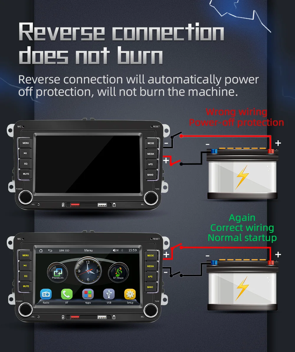 Reverse connection does not burn Reverse connection will automatically power off protection, will not burn the machine.