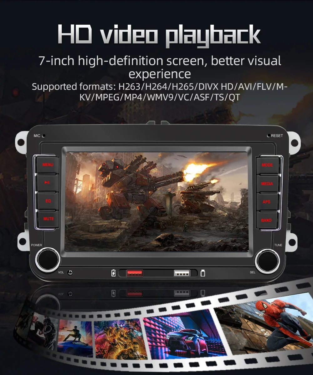 7-inch high-definition screen, better visual experience Supported formats:H263/H264/H265/DIVX HD/AVI/FLV/M-KV/MPEG/MP4/WMV9/VC/ASF/TS/OT