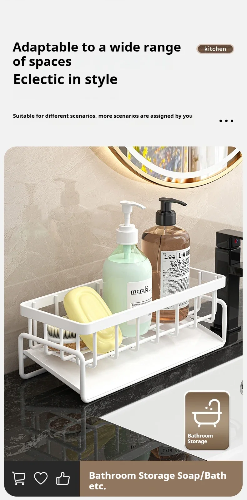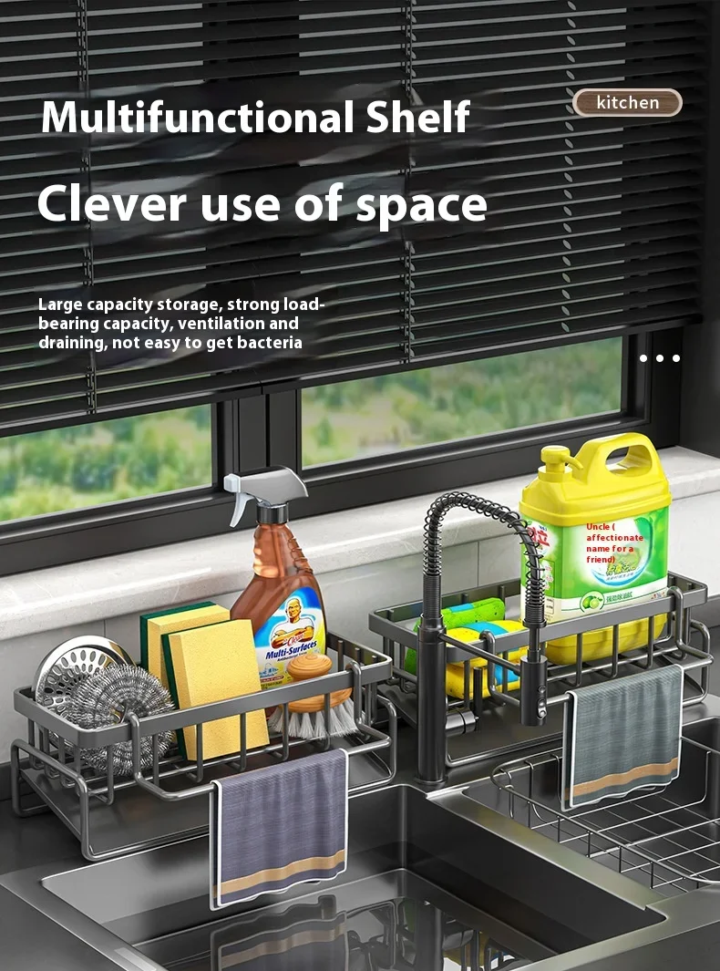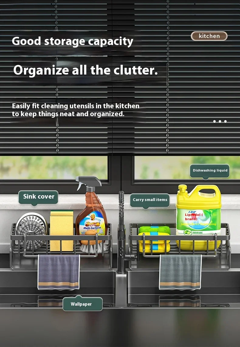 Carbon steel Kitchen Shelf Rag Storage Drainage Shelf Storage Rack Home Spice Sink Drainage dish drying rack Kitchen Accessories