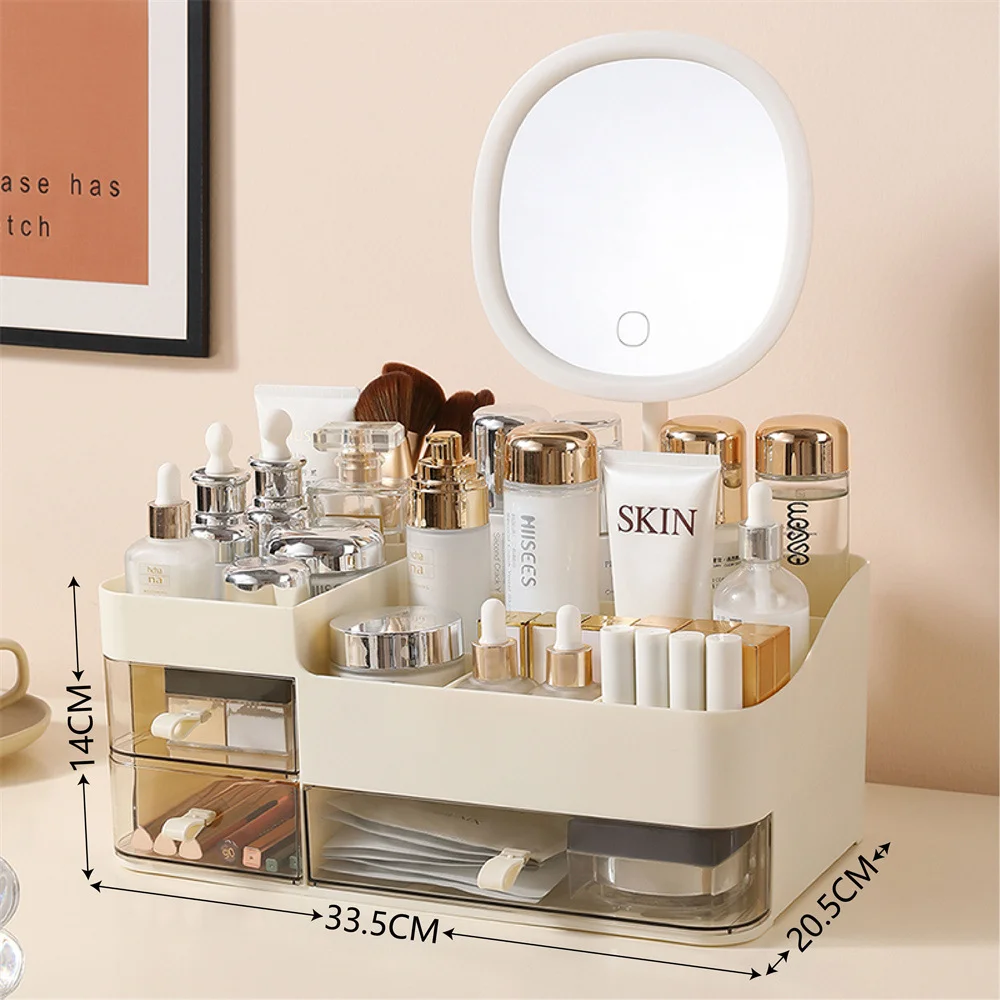 Chic Drawer-Style Cosmetic Organizer With Mirror - Portable Makeup Storage Box For Skincare, Lipstick & More