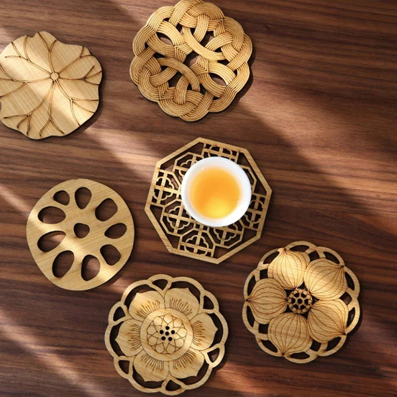 Creative Lotus Flower Drink Coasters Wooden Round Cup Mat Table Mat Tea Coffee Mug Placemat Home Decoration Kitchen Accessories