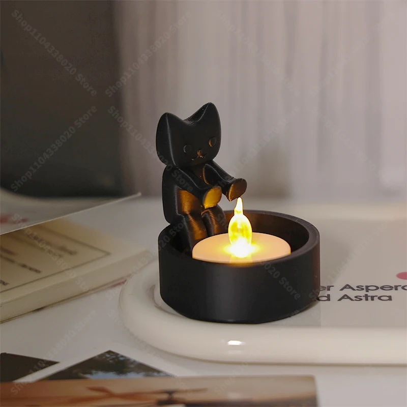 Cute Cat Candle Holder Decor 6.5cm Sitting Kitten Warmer Sculpture, Safe Plastic for Home Decoration