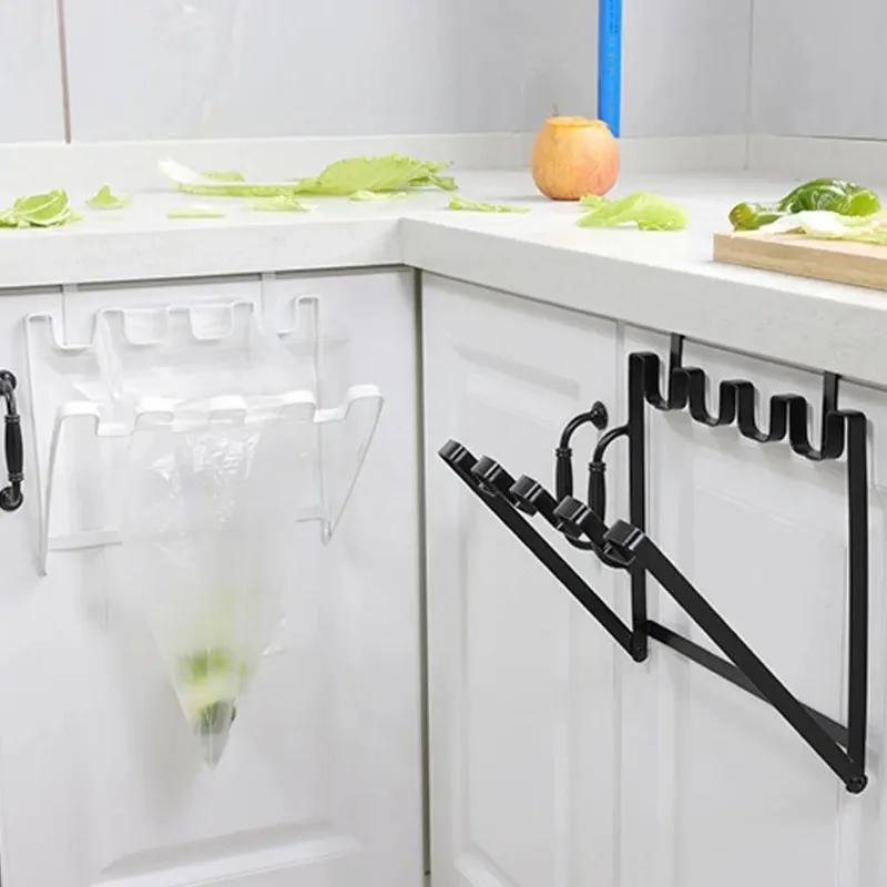 Foldable Garbage Bag Hanging Rack Kitchen Rubbish Holder Cupboard Over Door Storage Shelf Kitchen Cabinet Trash Bag Holder