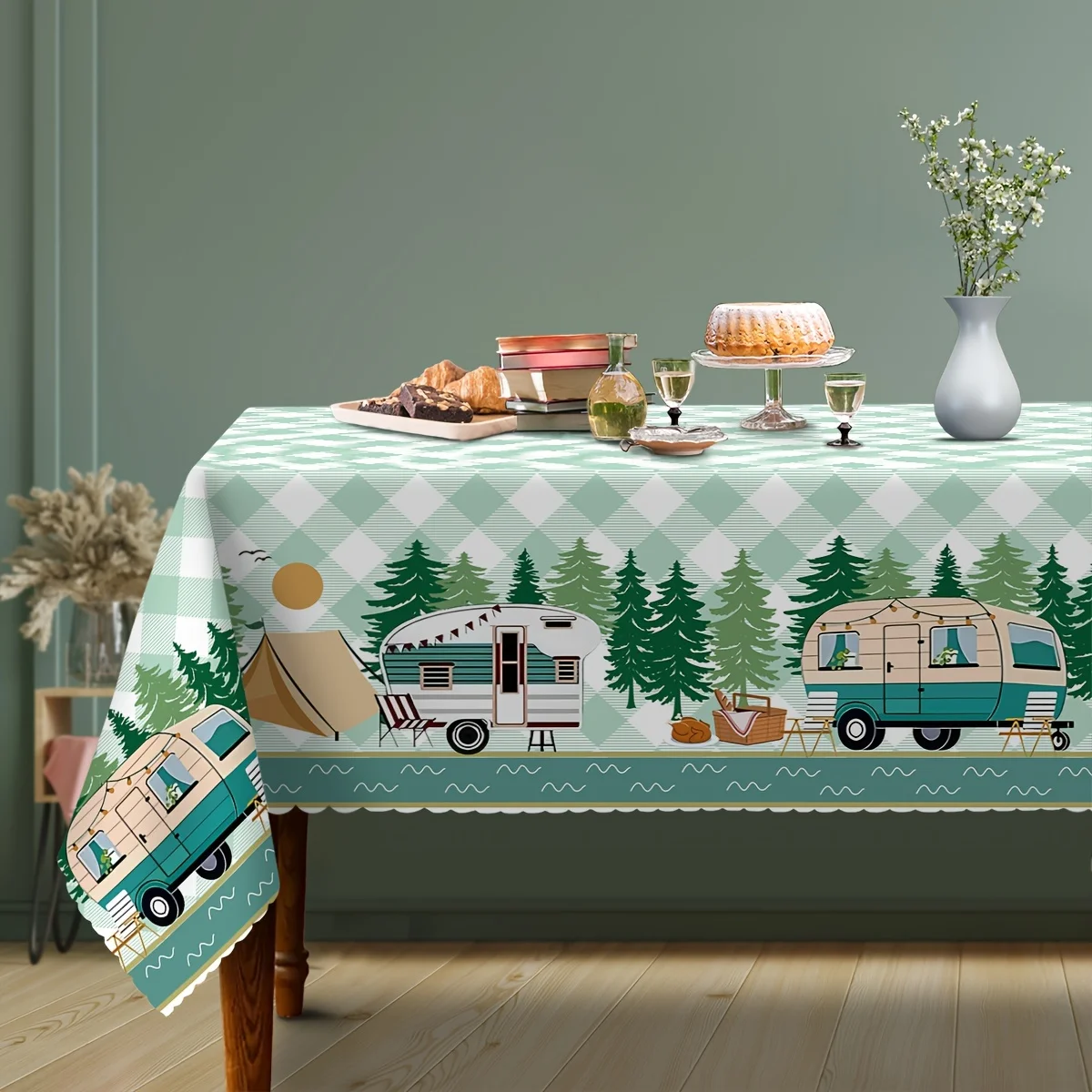 Green Checkered Trees Rectangle Tablecloth Holiday Home Party Decor Washable RV Campfire Table Cloths Outdoor Picnic Table Decor