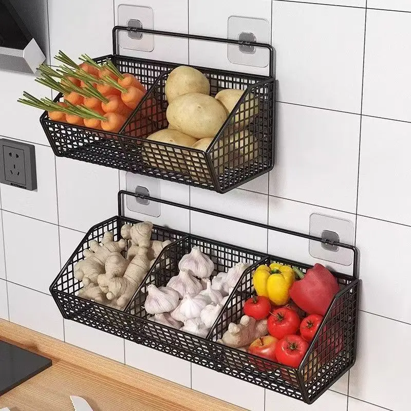 Kitchen Wall Hanging Storage Rack Multi-functional Onion Ginger Garlic Storage Rack Storage Box Basket Vegetable Basket