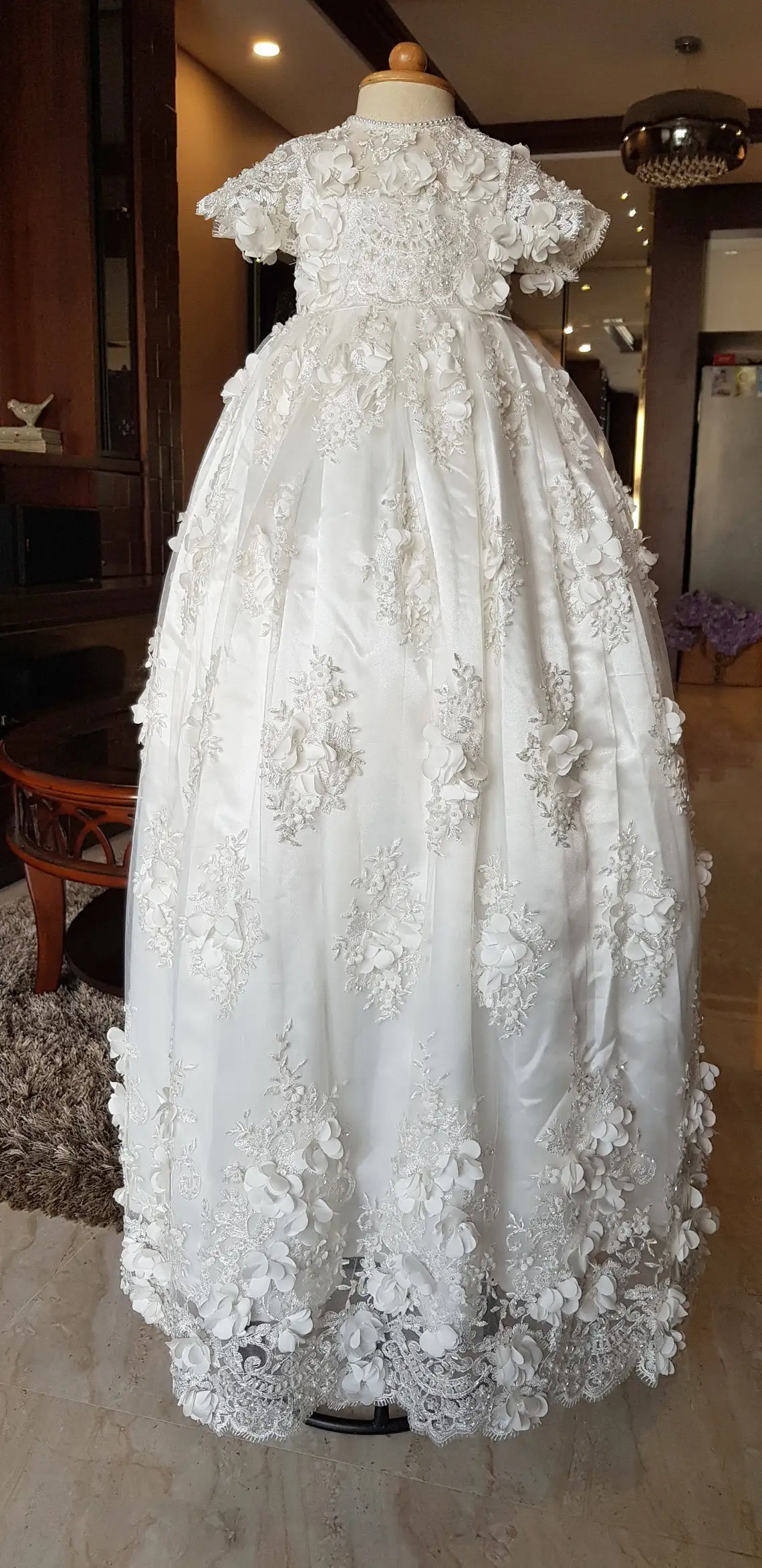 Luxury Baptism Dress Baby Girls Robe Lace Christening Gown With Bonnet Off White Ivory Custom Made New 2025 Customized