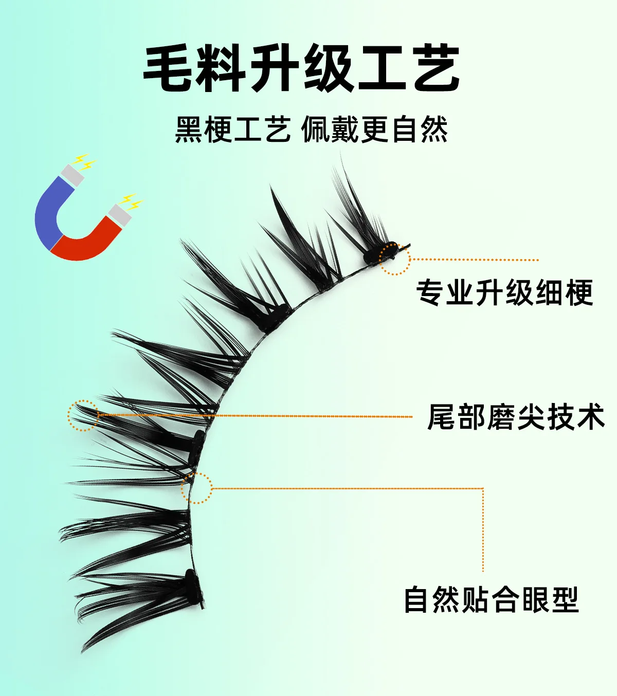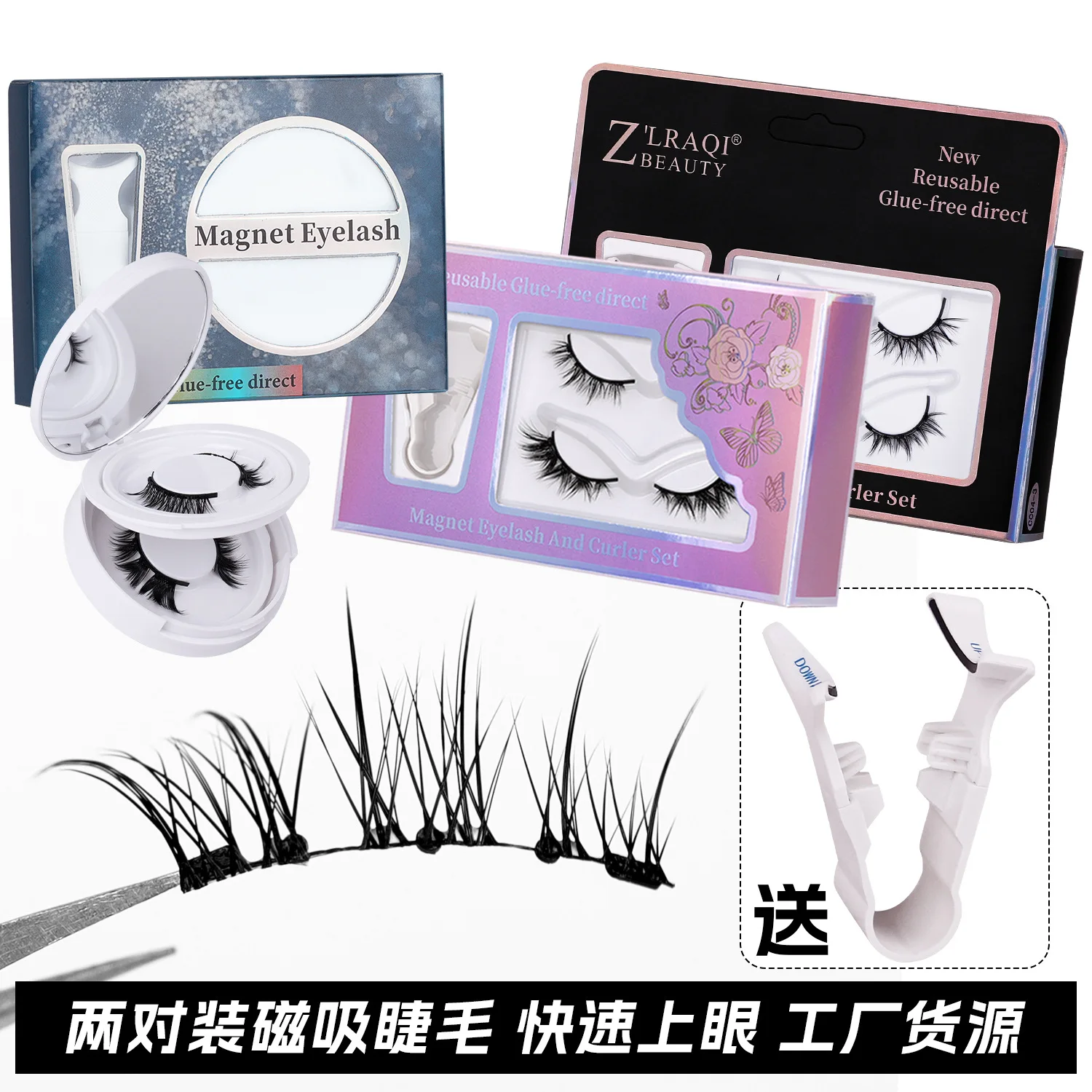 Magnetic Fake Eyelashes Set Reusable 3D Glue-free Waterproof Natural False Eyelashes With Travel-friendly Applicator