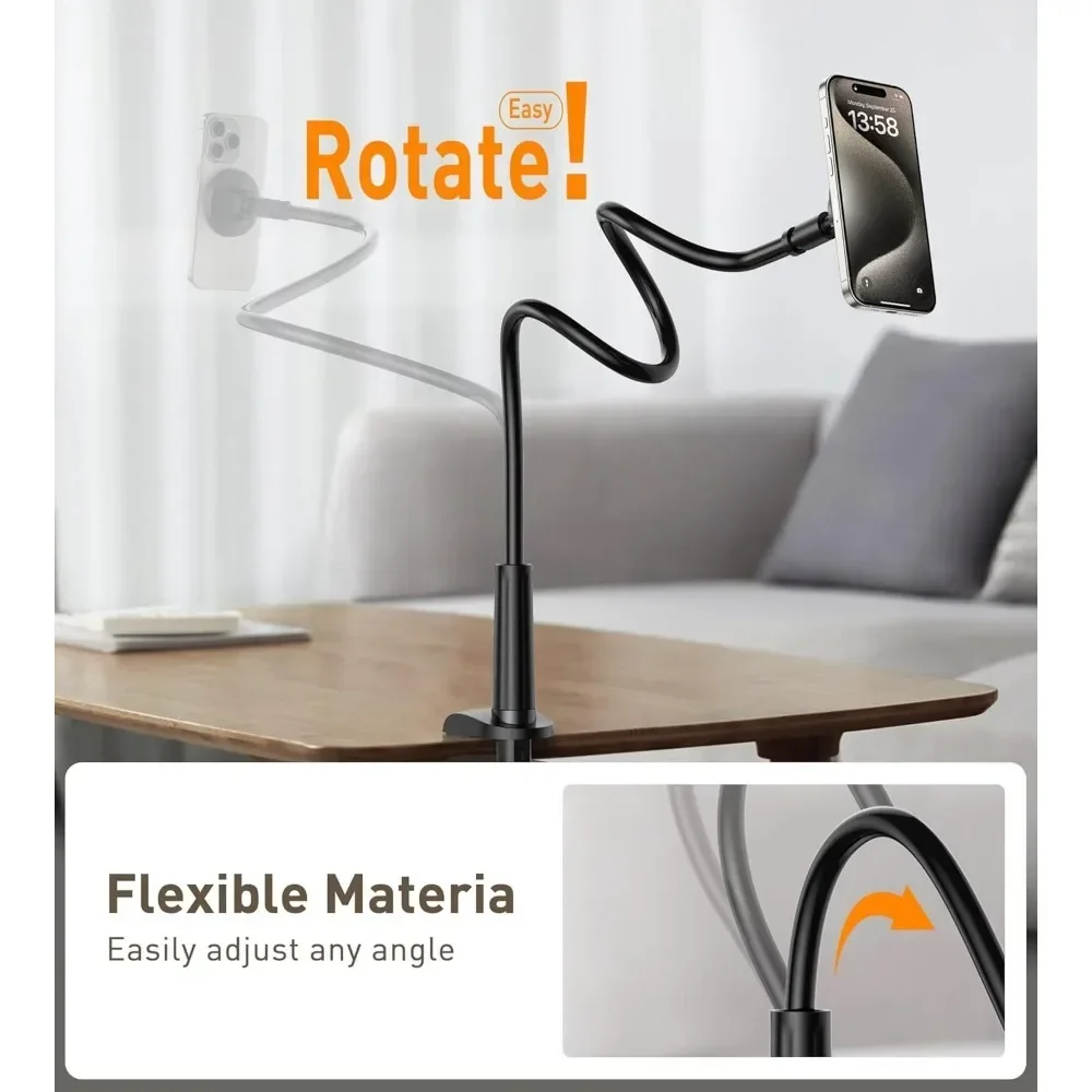 Magnetic Mobile Phone Stand Gooseneck Office Home 360° Rotation Bed Table Foldable Holder with Metal Rings for iPhone 16 15 14