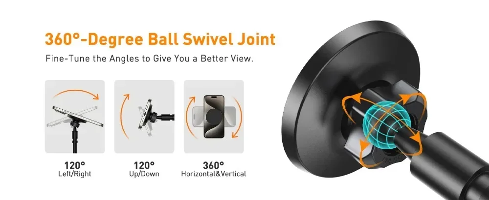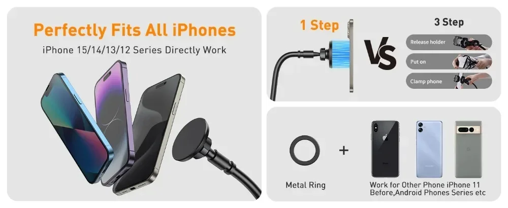 This innovative design uses a built-in magnet that firmly holds your iPhone 16/15/14/13/12 Series device as soon as it gets closer to it. This is much more convenient than using traditional phone holders that have mechanical parts that wear out, get stuck and eventually break down. Its powerful magnets will hold your phone firmly so it doesn't fall off.