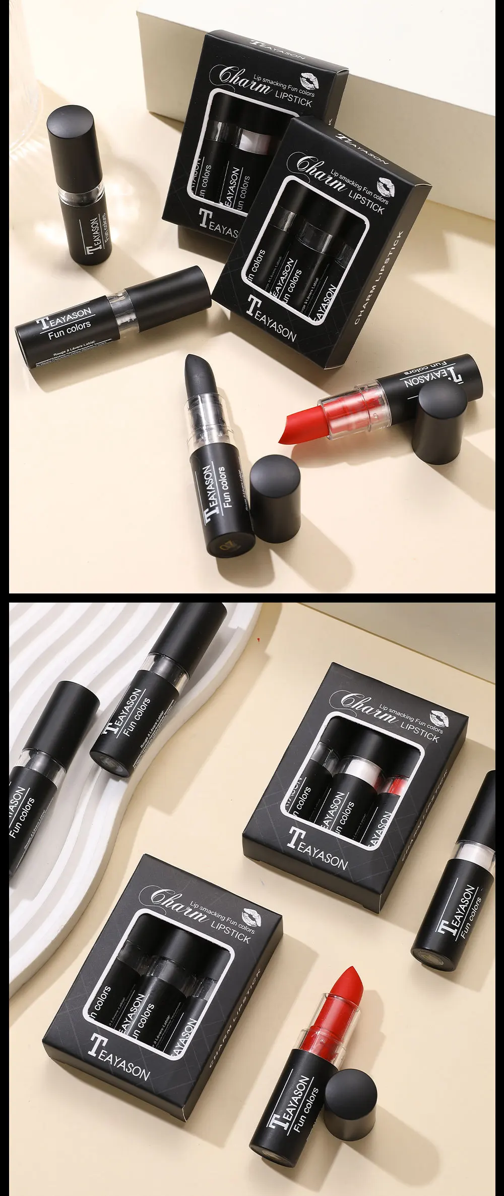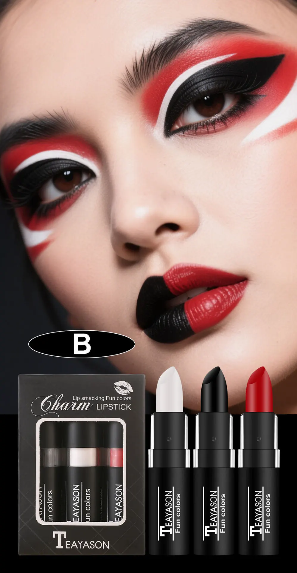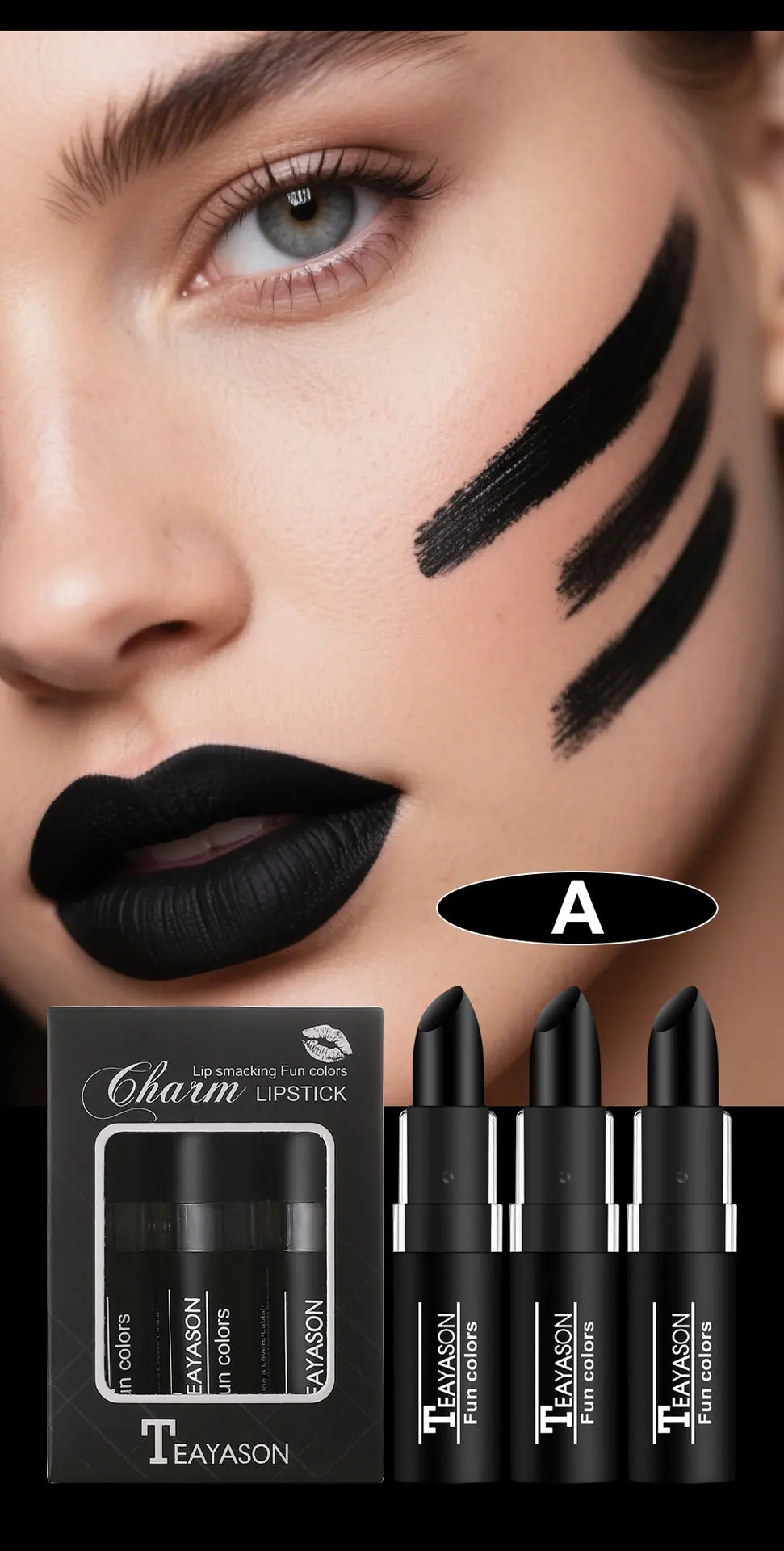 TEAYASON Velvet Matte Lipstick Set Dark Black White Red Christmas Halloween Party Lipstick Waterproof Long Lasting Non-Stick Cup Facial Painting
