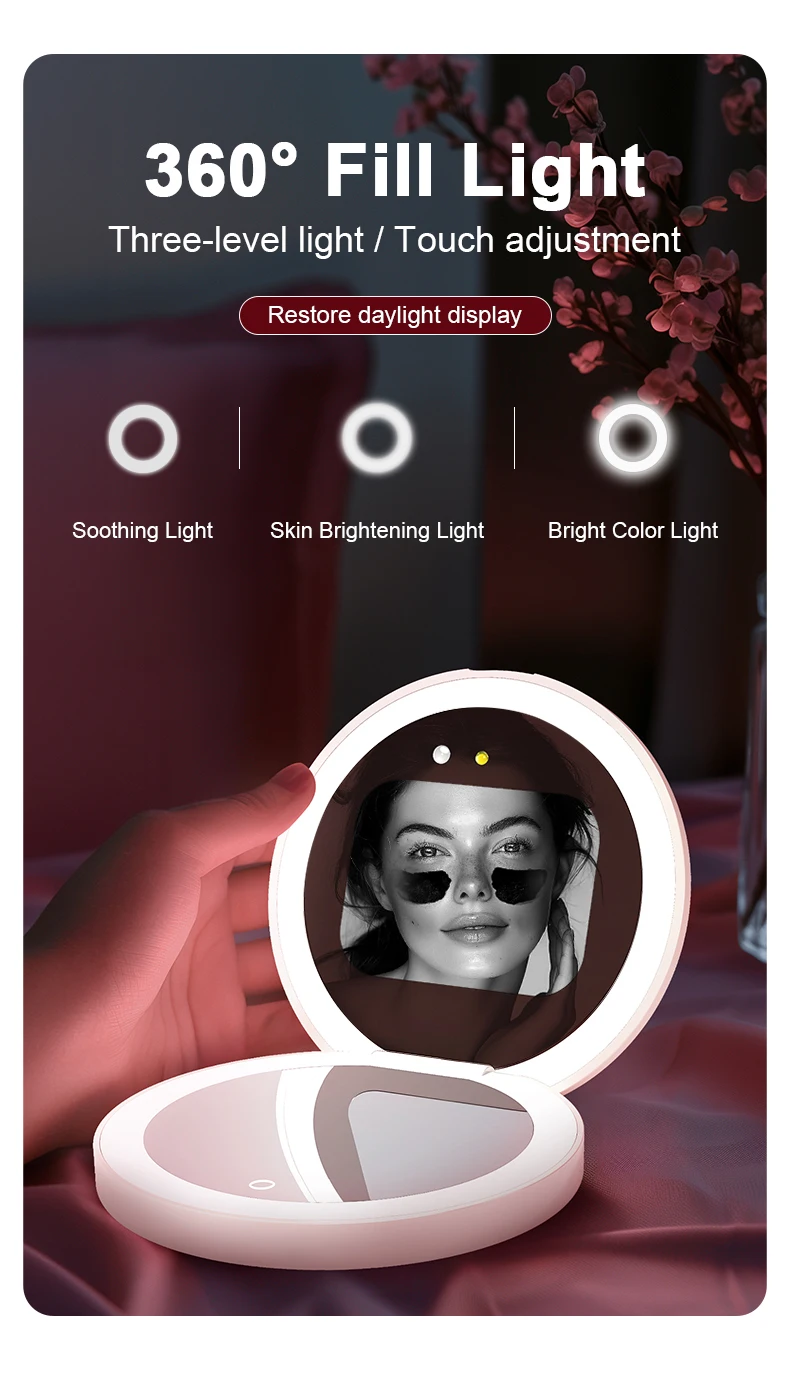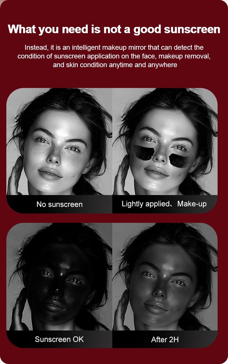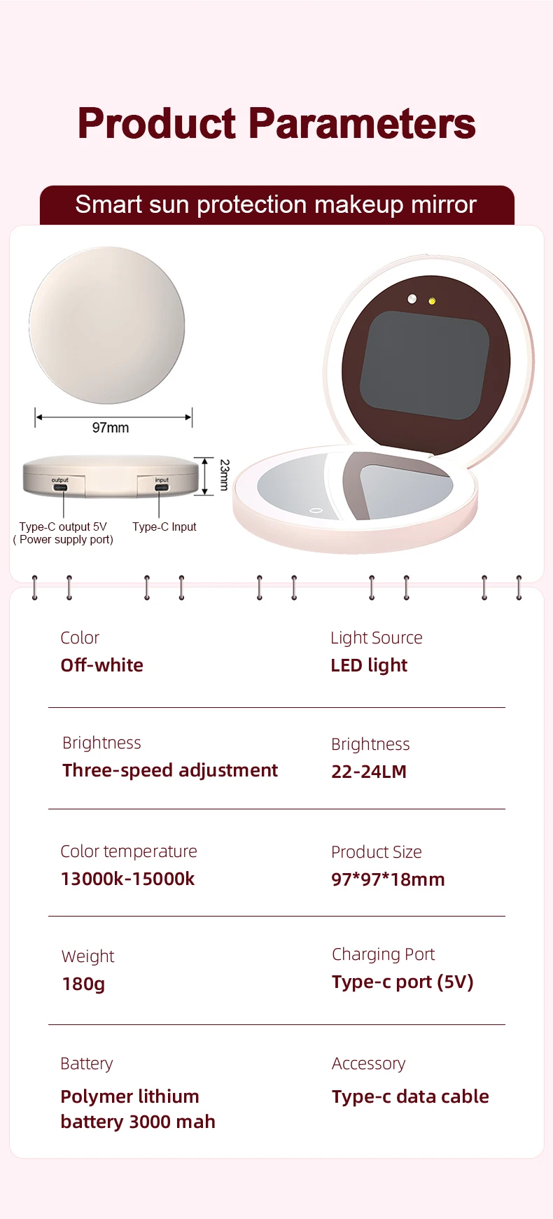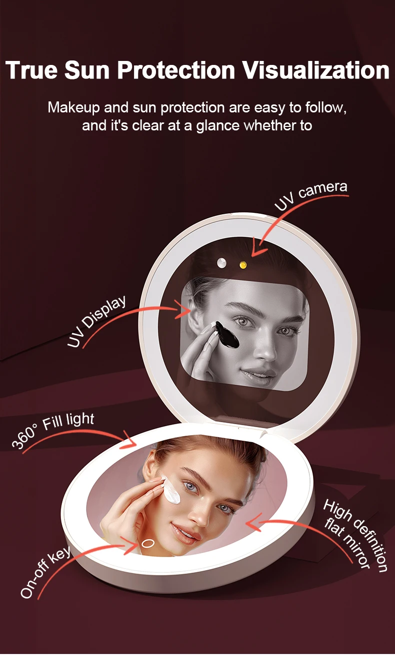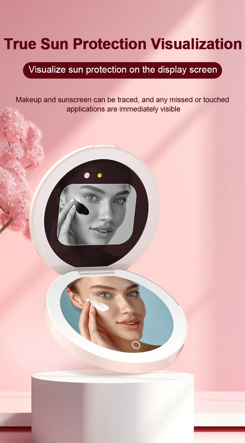 Mini Portable Makeup Mirror 2.8-Inch Display Smart LED Sunscreen Detection Compact Travel Size for Beauty On-the-Go
