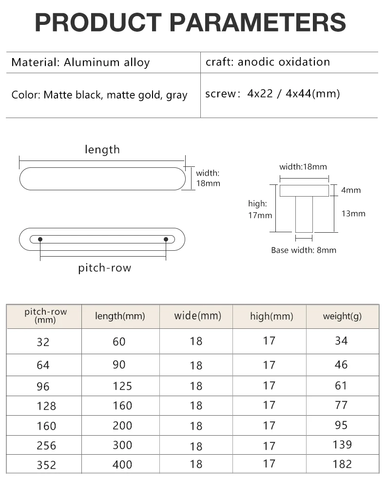 Modern style wardrobe cabinet bathroom cabinet black pulls drawer handles furniture cupboard aluminum alloy handle
