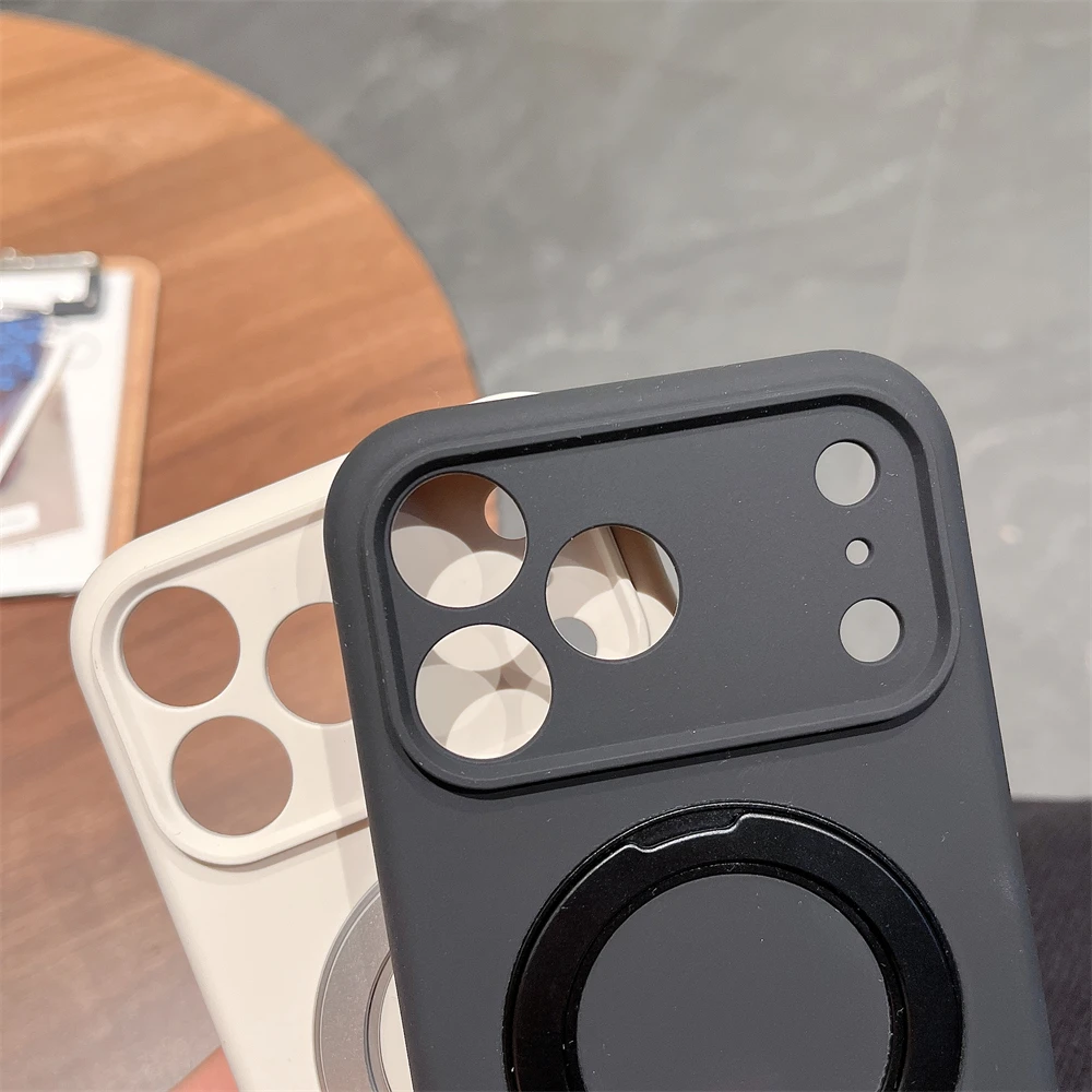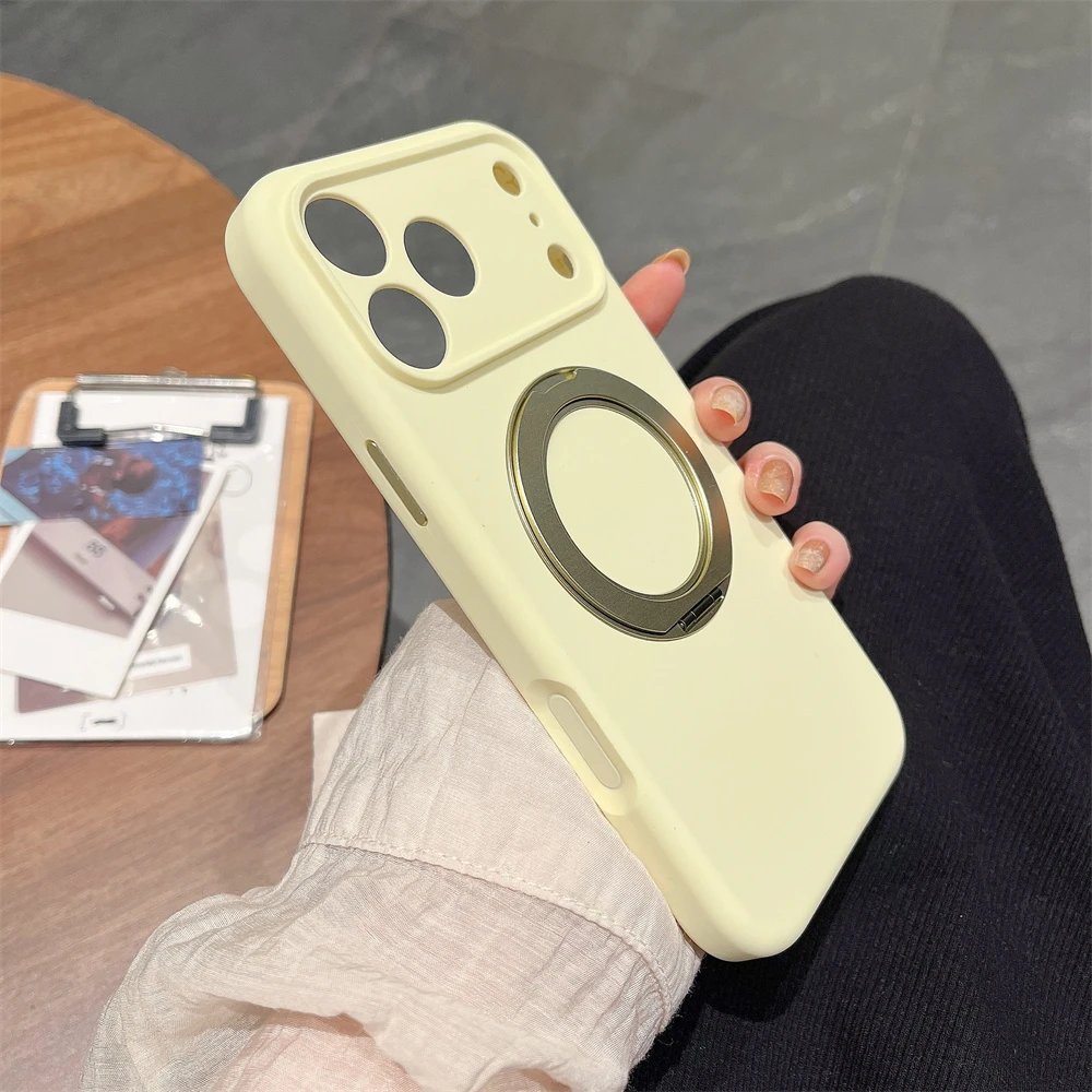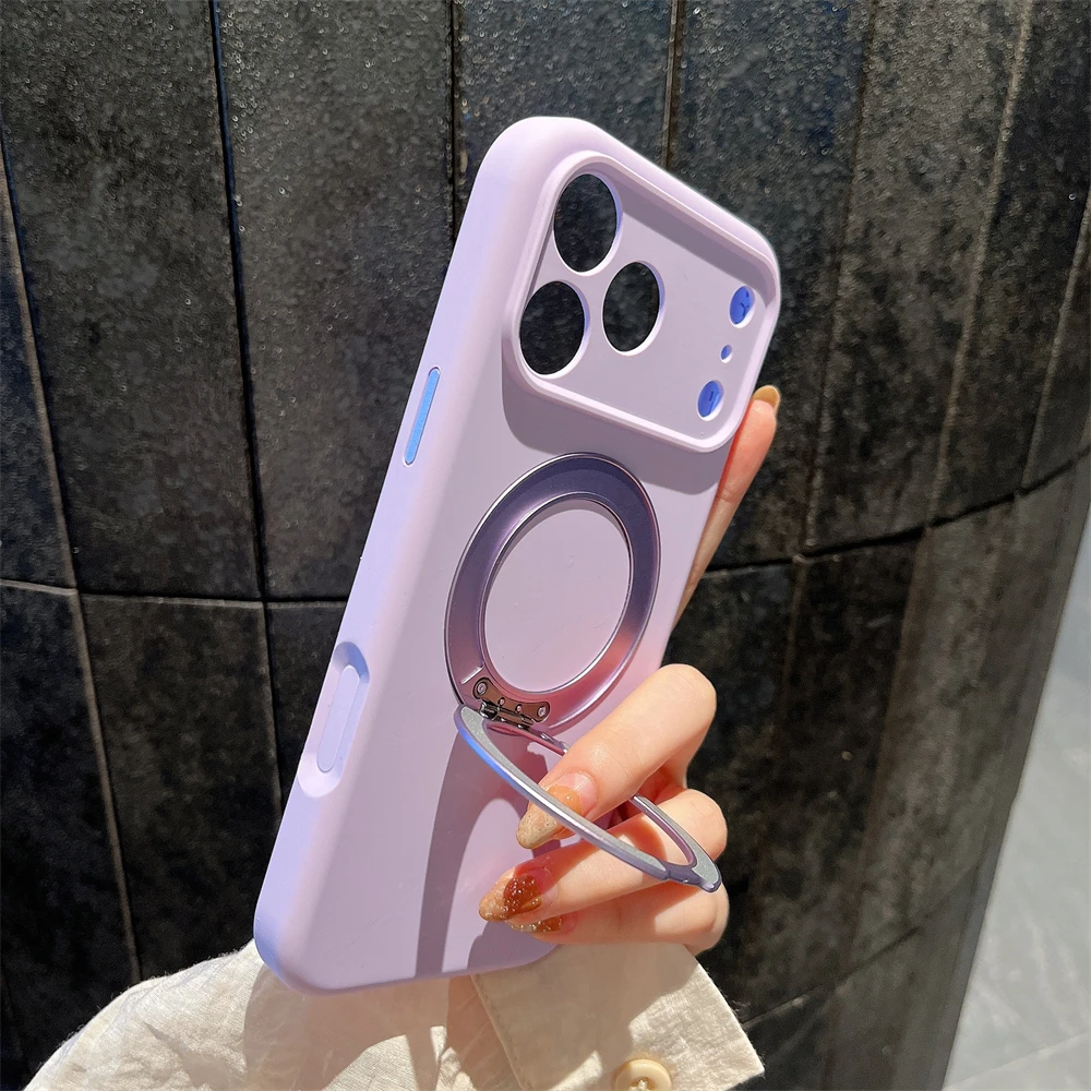 Simple INS Candy Color Liquid Silicone Case For IPhone 17Pro Max Air 16 15 14 Magnetic Rotable Bracket Lens Full-pack Back Cover