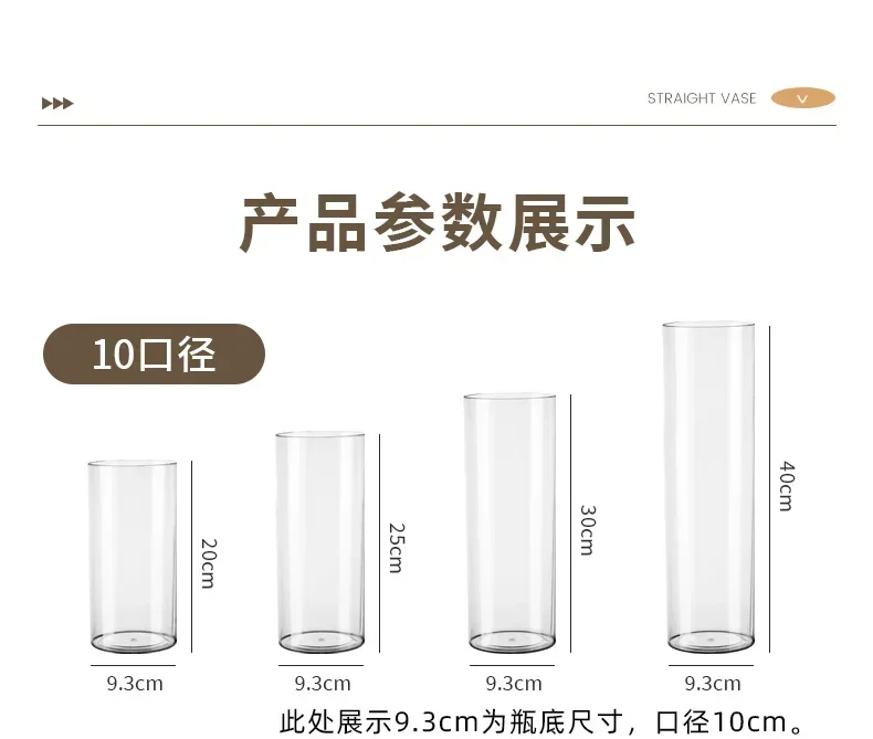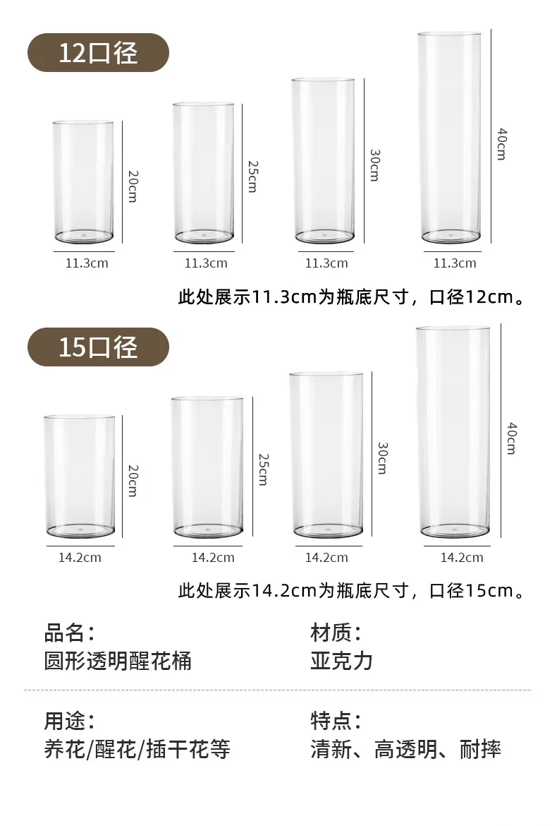 Tall Large Plastic Clear Vase - Acrylic Cylinder Flower Vase, Unbreakable Hurricane, Wedding Centerpieces Hydroponic Decor