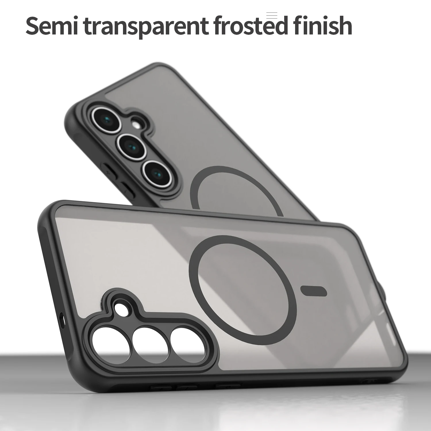 Translucent Frosted Shield Shockproof Case For Samsung Galaxy S25 FE Magnetic Wireless Charging TPU Frame Plastic Phone Cover