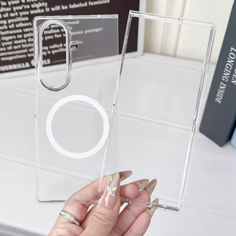 Transparent Ultra Thin Magnetic Phone Case for Samsung Galaxy Z Fold 7 6 5 4 3 Magsafe Wireless Charging Protection Cover Funda