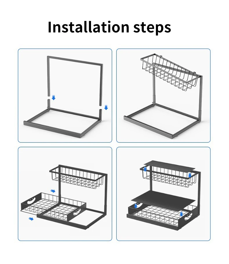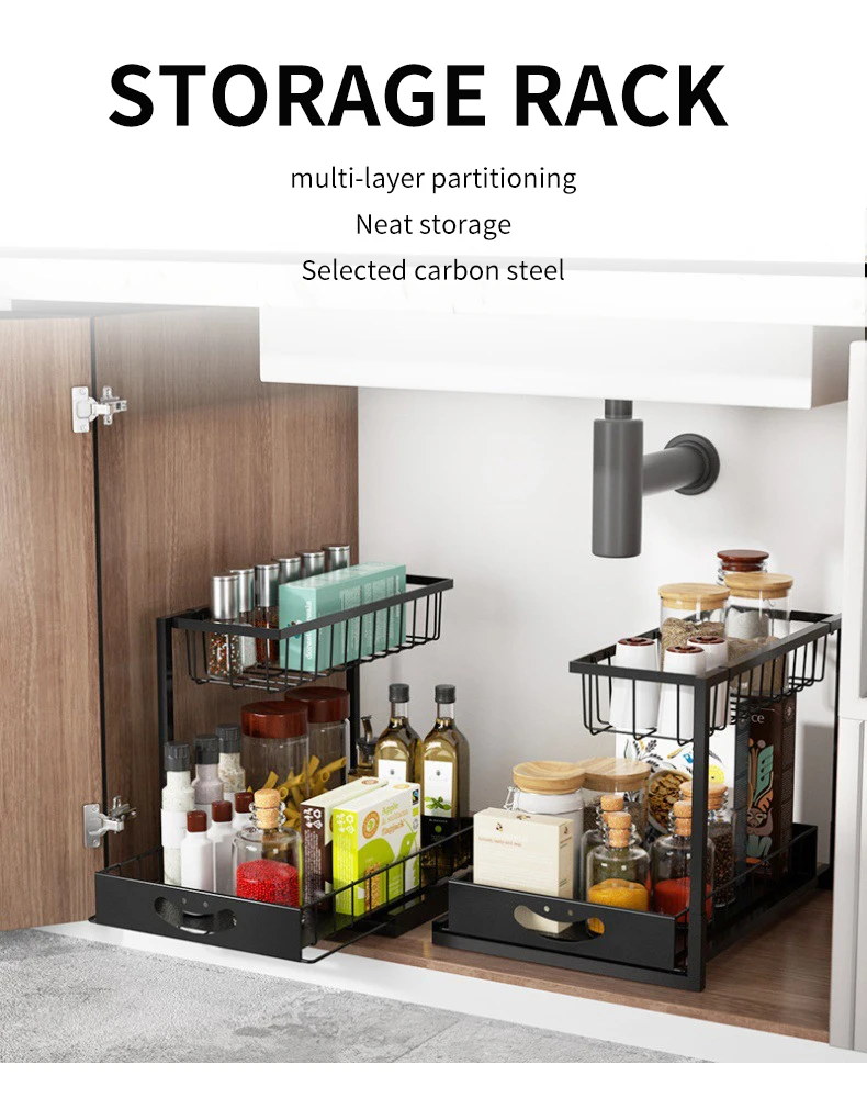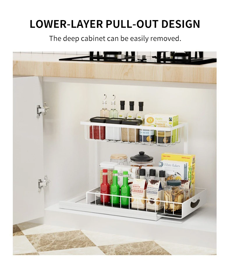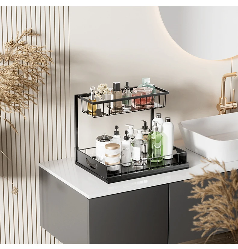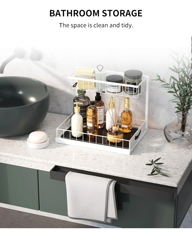 Under Sink 2 Tier Sliding Cabinet Basket Organizer Drawer Pull-Out Cabinet Organizer For Bathroom and Kitchen