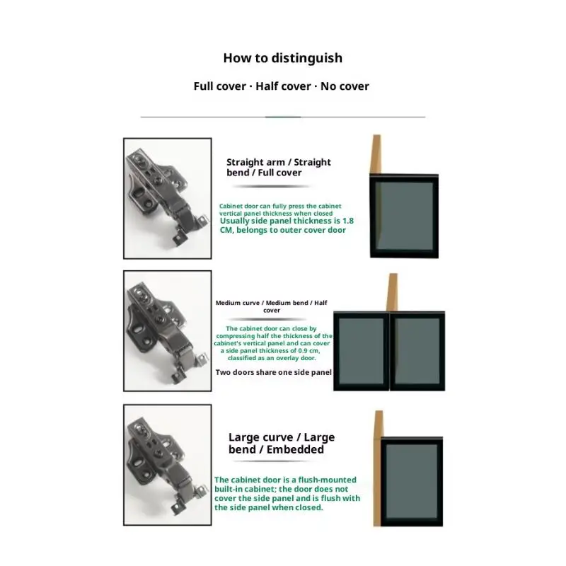 The fully covered or semi covered design allows the hinges to be completely hidden inside the cabinet, maintaining a simple and uniform appearance from the outside.