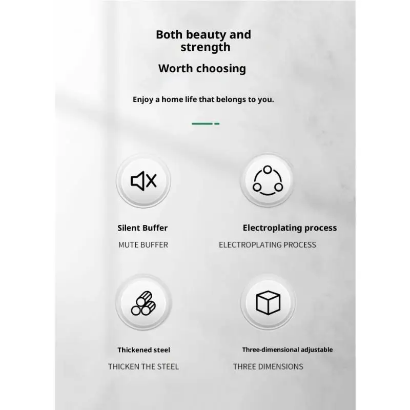 Built in precision structure enables gentle and smooth opening and closing of cabinet doors, effectively reducing collision noise.