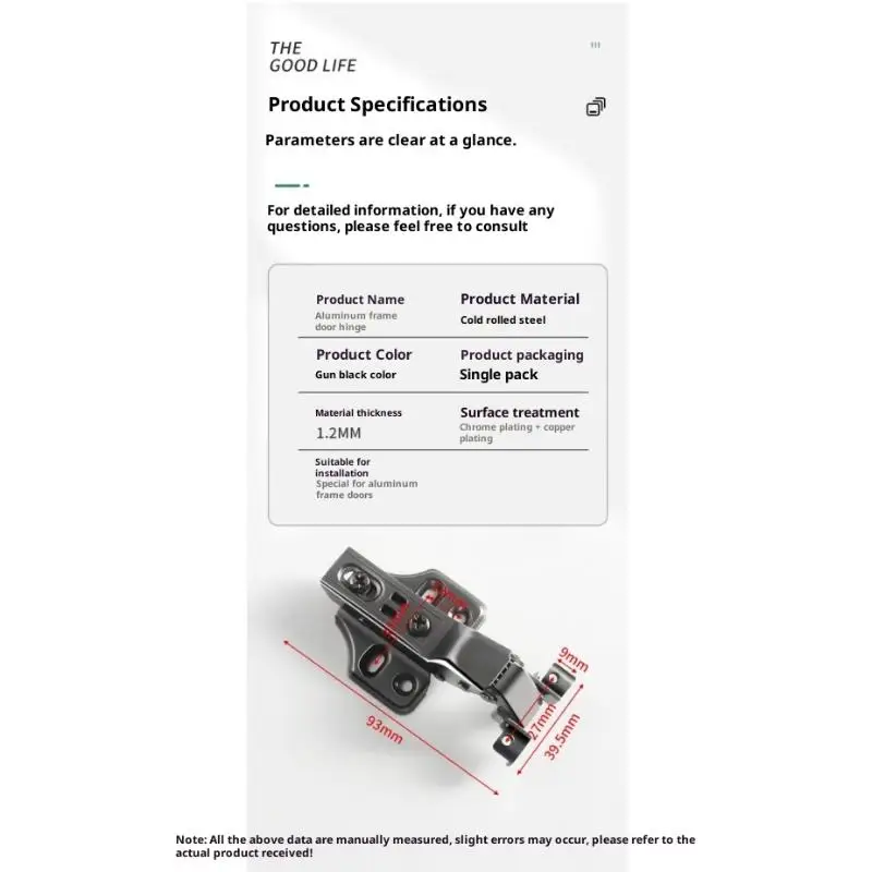 Universal Heavy-Duty Aluminum Frame Glass Door Hinge for Bathroom Kitchen Display & Storage Cabinets - Hidden Installation
